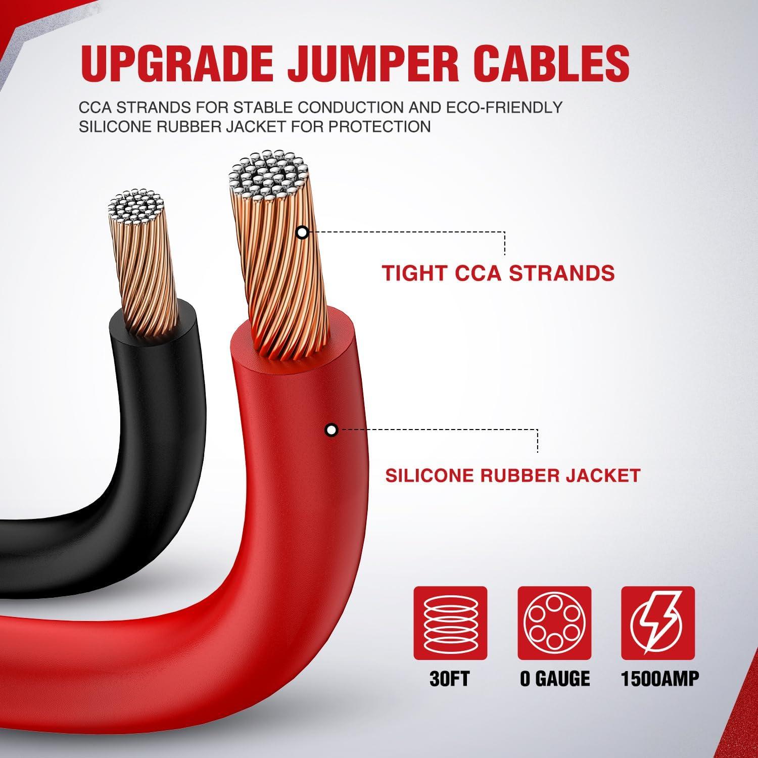 Nilight 0 Gauge 30 Feet Heavy Duty Jumper Cables 1000 Amp Booster Battery Cables with Permanent Installation kit and Quick Connect Plug Includes carrying bag for 12V & 24V Cars SUVs and Trucks(0 Guage 30 FT Quick Connect)