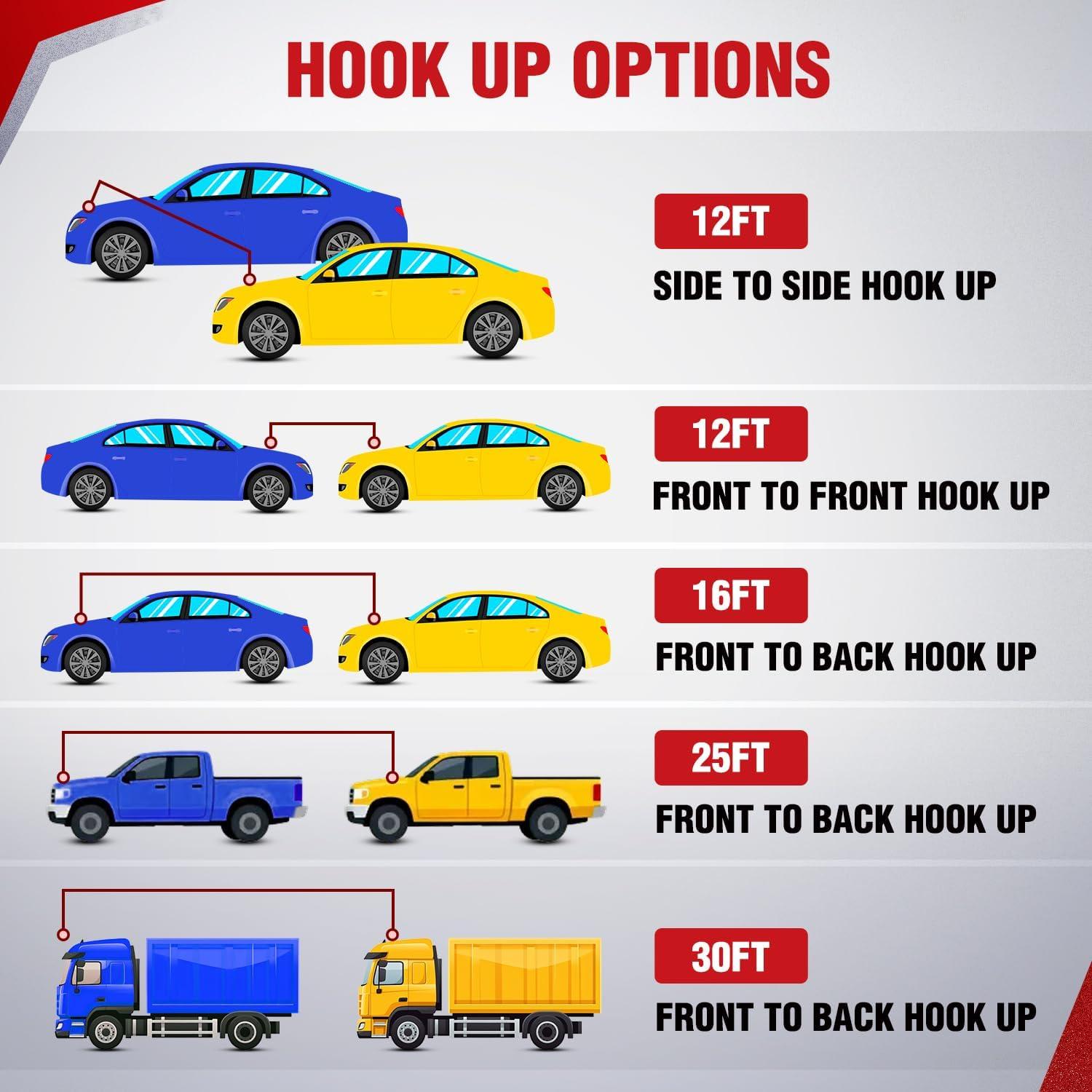 【COMPATIBLE ALL VEHICLE TYPES】 Compatible with 12V/24V voltage systems, it covers a wide range of vehicles including cars, SUVs, pickup trucks, heavy-duty trucks, RVs. Whether for city commuting or off-road scenarios, a single connection provides reliable starting power for discharged batteries.