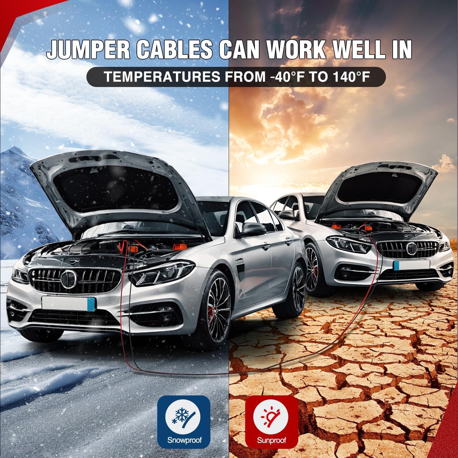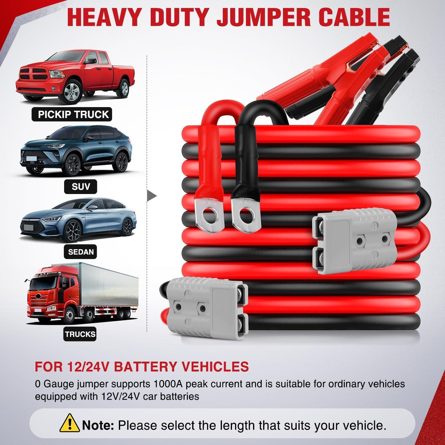 【COMPATIBLE ALL VEHICLE TYPES】 Compatible with 12V/24V voltage systems, it covers a wide range of vehicles including cars, SUVs, pickup trucks, heavy-duty trucks, RVs. Whether for city commuting or off-road scenarios, a single connection provides reliable starting power for discharged batteries.