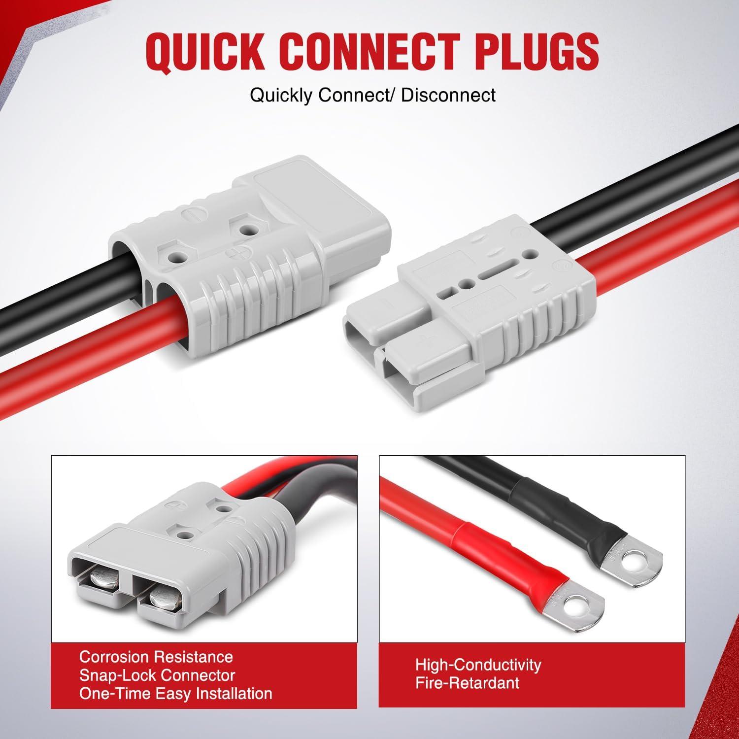 【Quick-Connect Plug】 One end can be installed directly onto the car without disassembly, ensuring precise alignment of positive and negative terminals, eliminating complex wiring steps, and supporting repeated use.