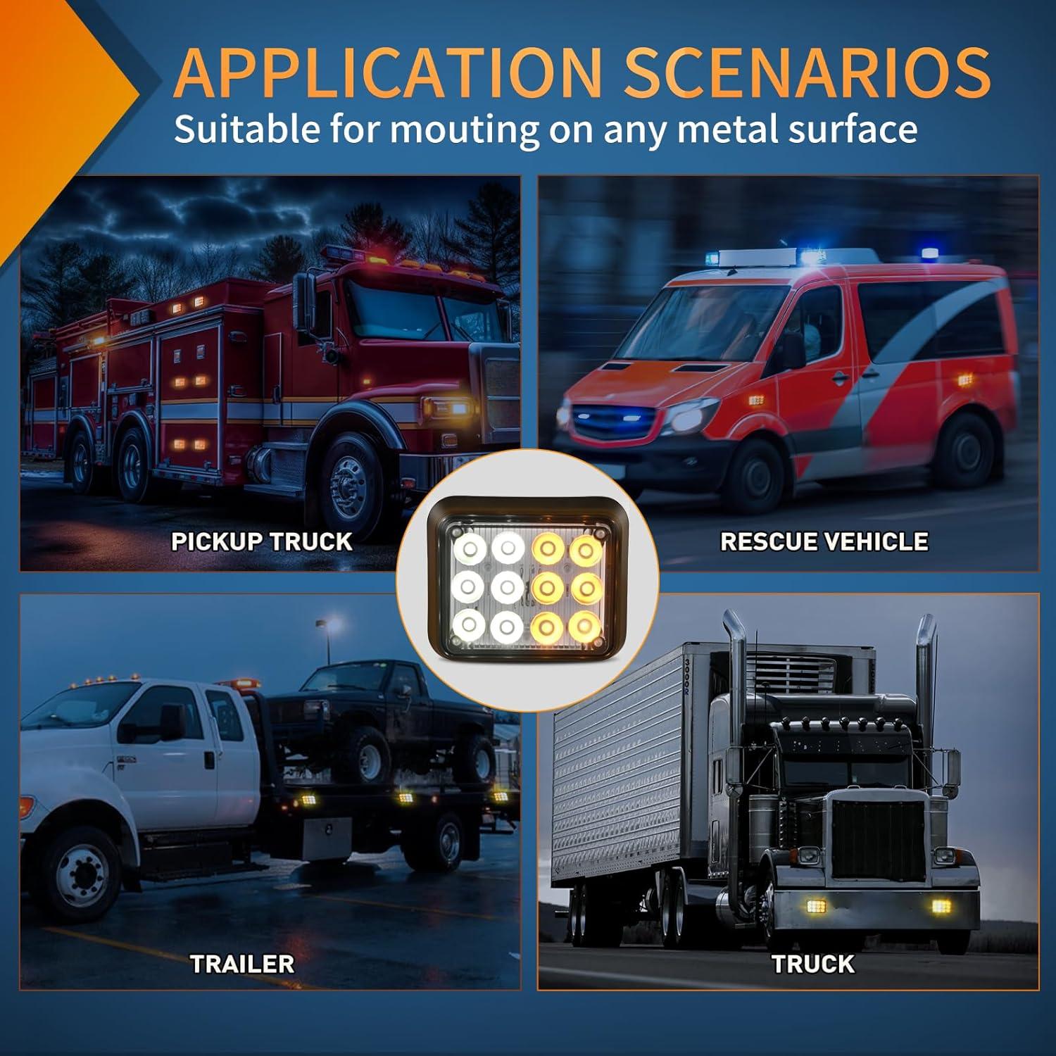 Wide Range of Applications: Suitable for most 12-24V DC powered vehicles, compatible with all emergency vehicles and trucks, construction vehicles, safety vehicles, security vehicles, snow sweepers, postal and city service personnel, tractors, buses, tractors, trailers, etc.