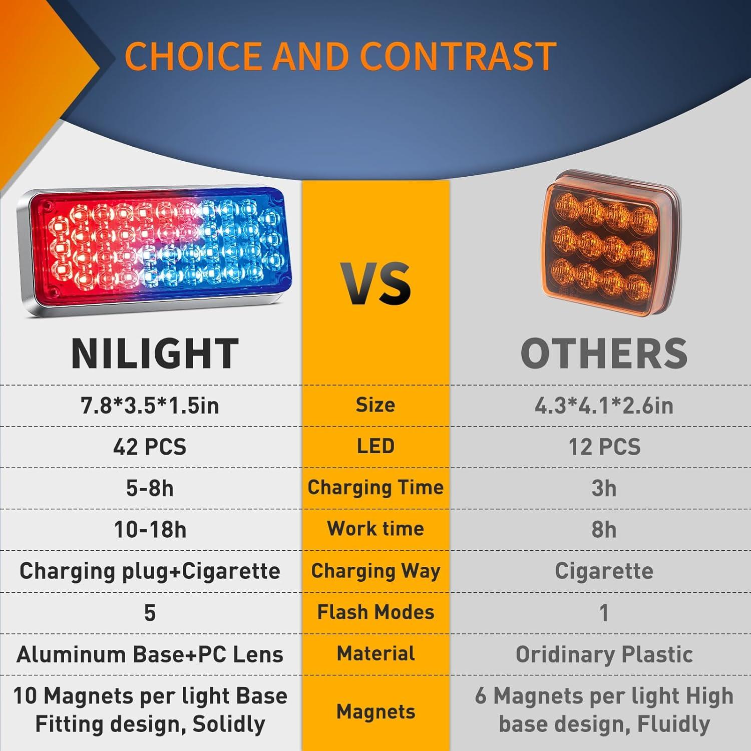 Nilight 12LED Magnetic Wireless Trailer Lights 2PCS Rechargeable Portable Hazard Beacon Warning Light Amber and White Emergency Strobe Light for Trucks Trailers Vehicles Cars Bus Surface Mount(42LED Red Blue)