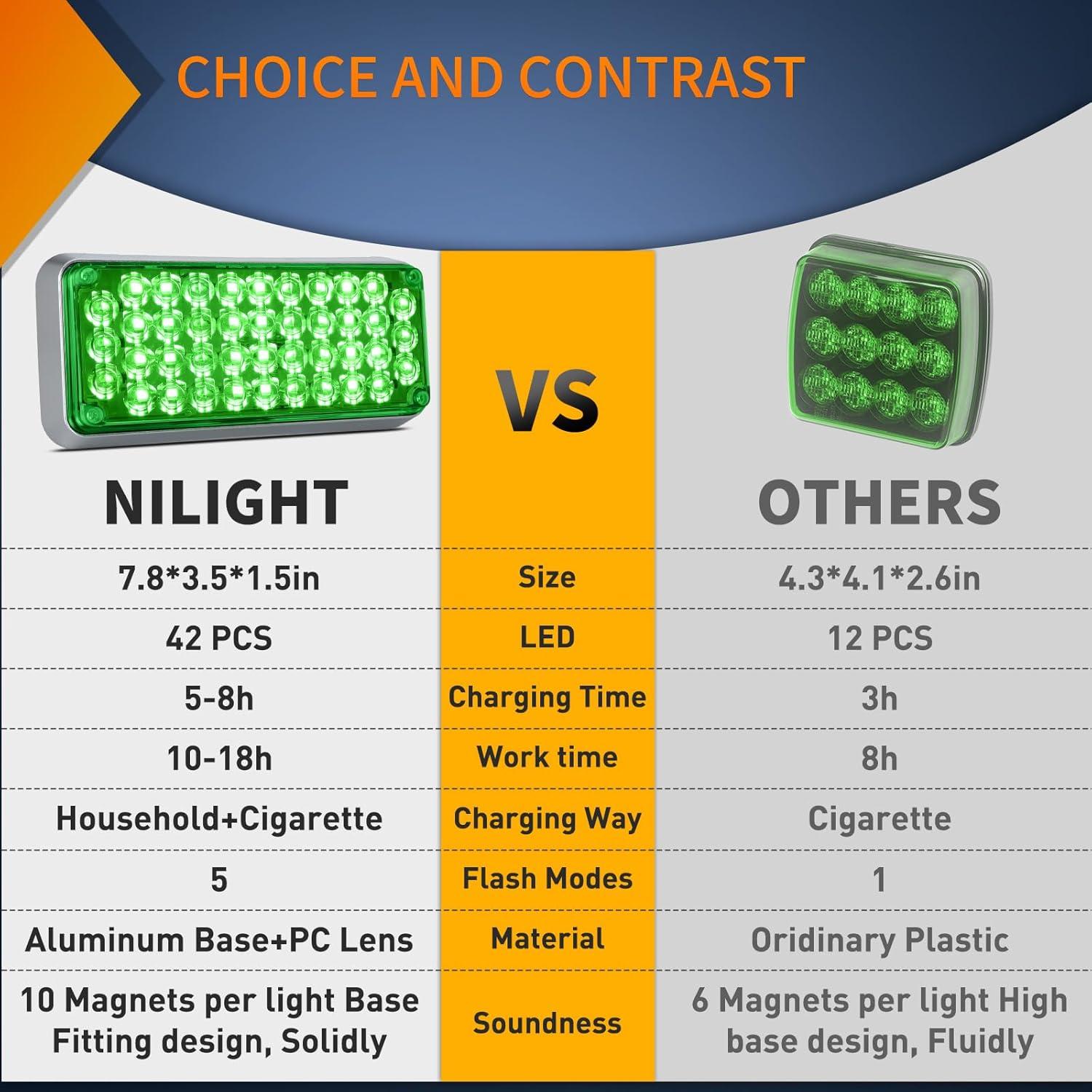 Nilight 12LED Magnetic Wireless Trailer Lights 2PCS Rechargeable Portable Hazard Beacon Warning Light Amber and White Emergency Strobe Light for Trucks Trailers Vehicles Cars Bus Surface Mount(42LED Green)