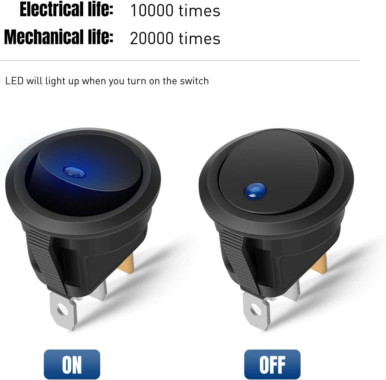 Perfect Design: Designed to connect and disconnect a DC12V 20A electrical circuit at will, SPST: ON-OFF control; 2 pole design (On/Off), 3rd poles with LED to be connected to earth. Fluorescent lamps will be lighted up when the switch is turned on