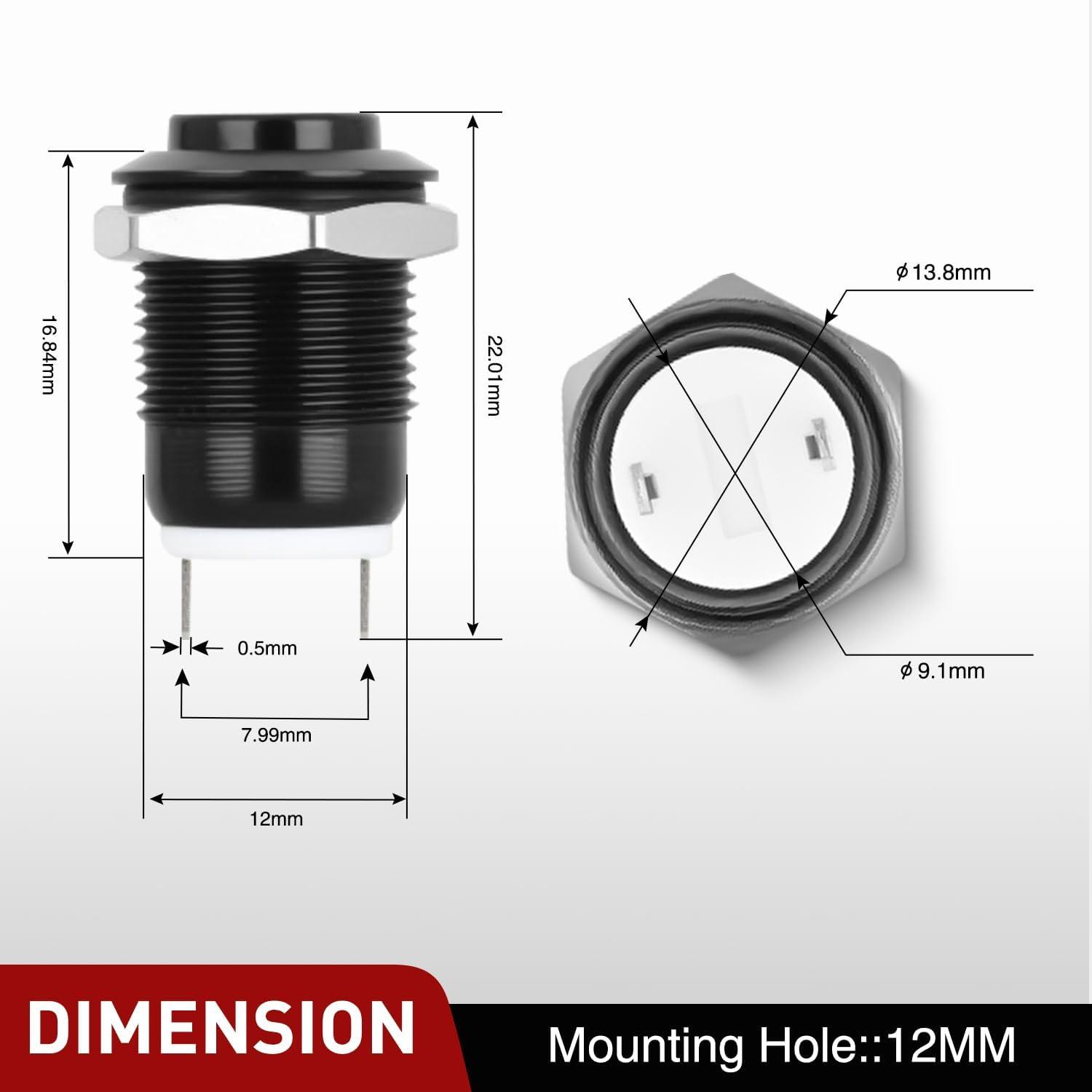 Nilight 12PCS 12V Blue Round Toggle LED Switch 20A 12V DC On/Off SPST for Car Truck Rocker On-Off Control(6PCS 12mm Momentary Switch Steel)