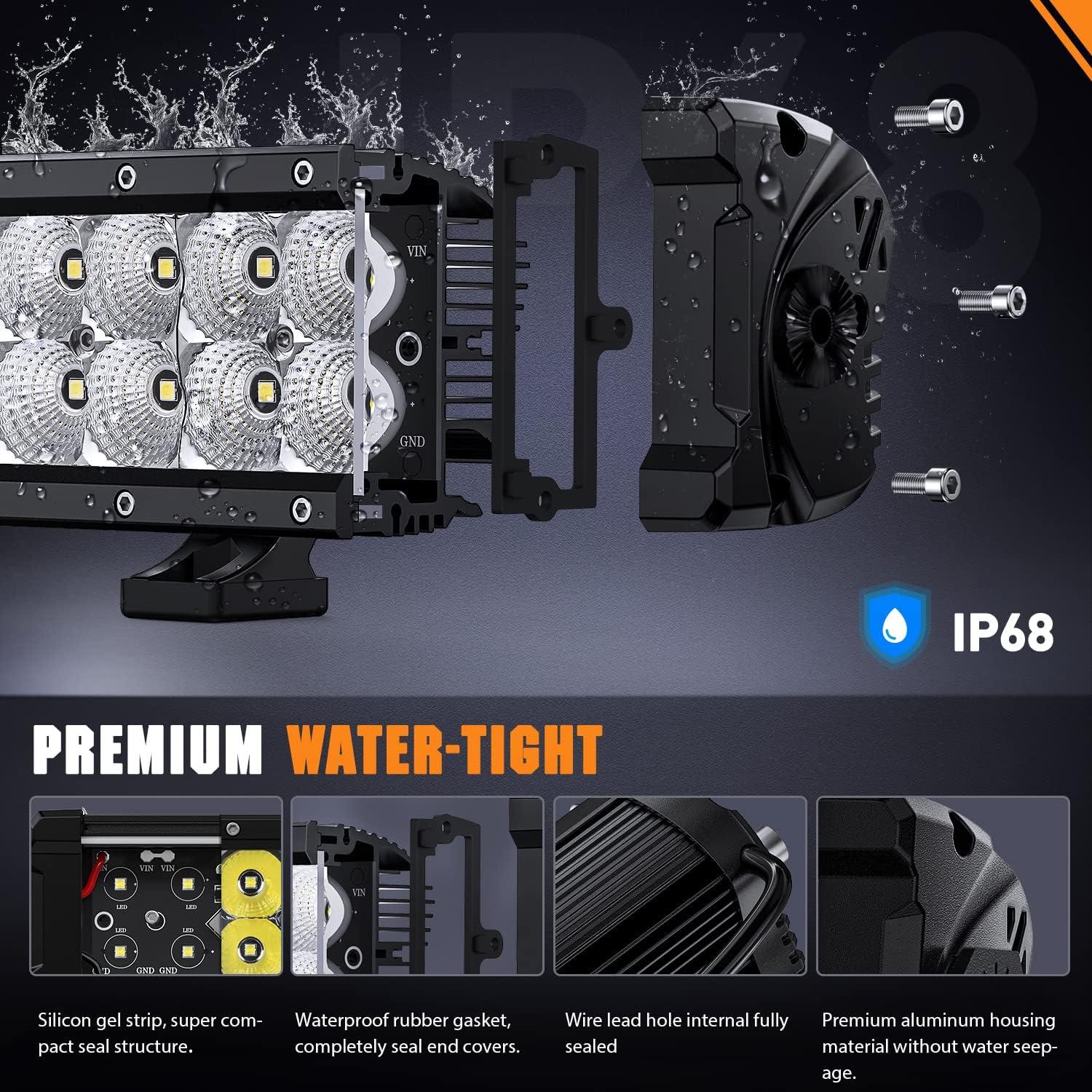 【Premium Durability】 IP68 waterproof rated, powerful to withstand any harsh environments and weather conditions. Solid built in quality 6063 and ADC12 aluminum housing and thick heat shrink shell, efficiently accelerate heat dissipation and maintain a safe temperature to ensure stable lighting output as well as lighting durability