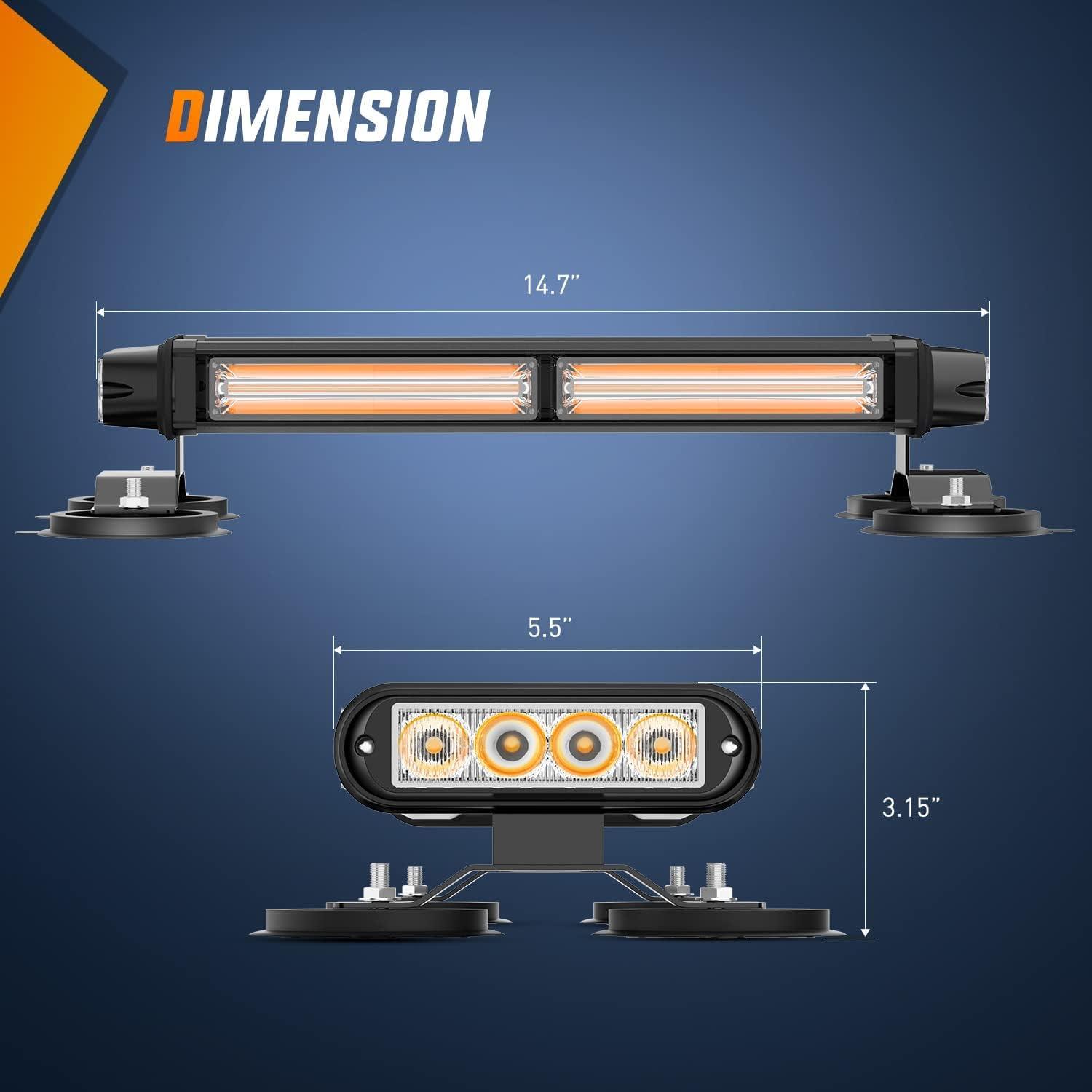 Nilight 14.5" Amber COB LED Strobe Rooftop Flashing Light Bar High Visibility Emergency Hazard Warning Beacon Lights w/Magnetic Base for Safety Vehicles Trucks Pickup Cars Snowplow(14.5“ COB Amber)