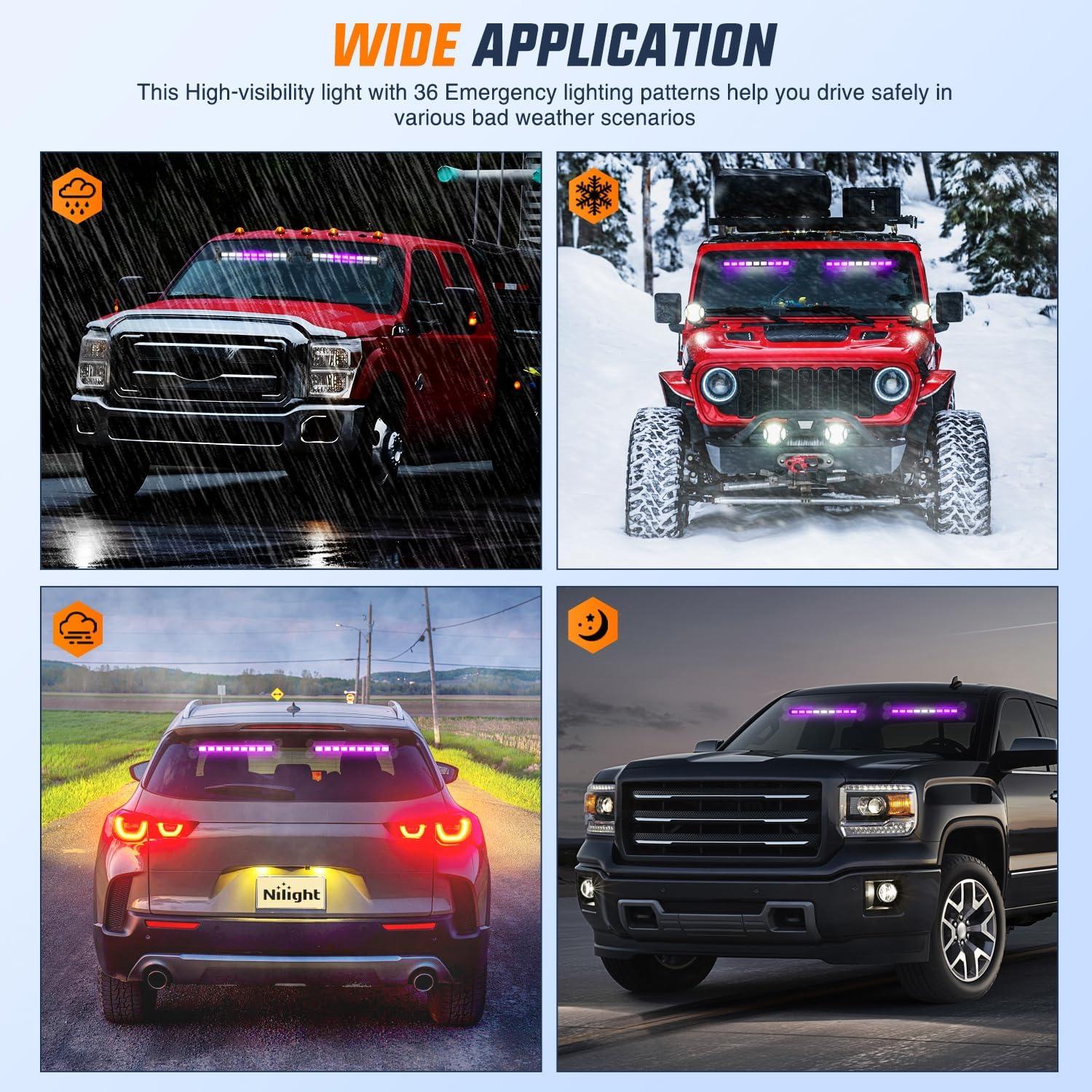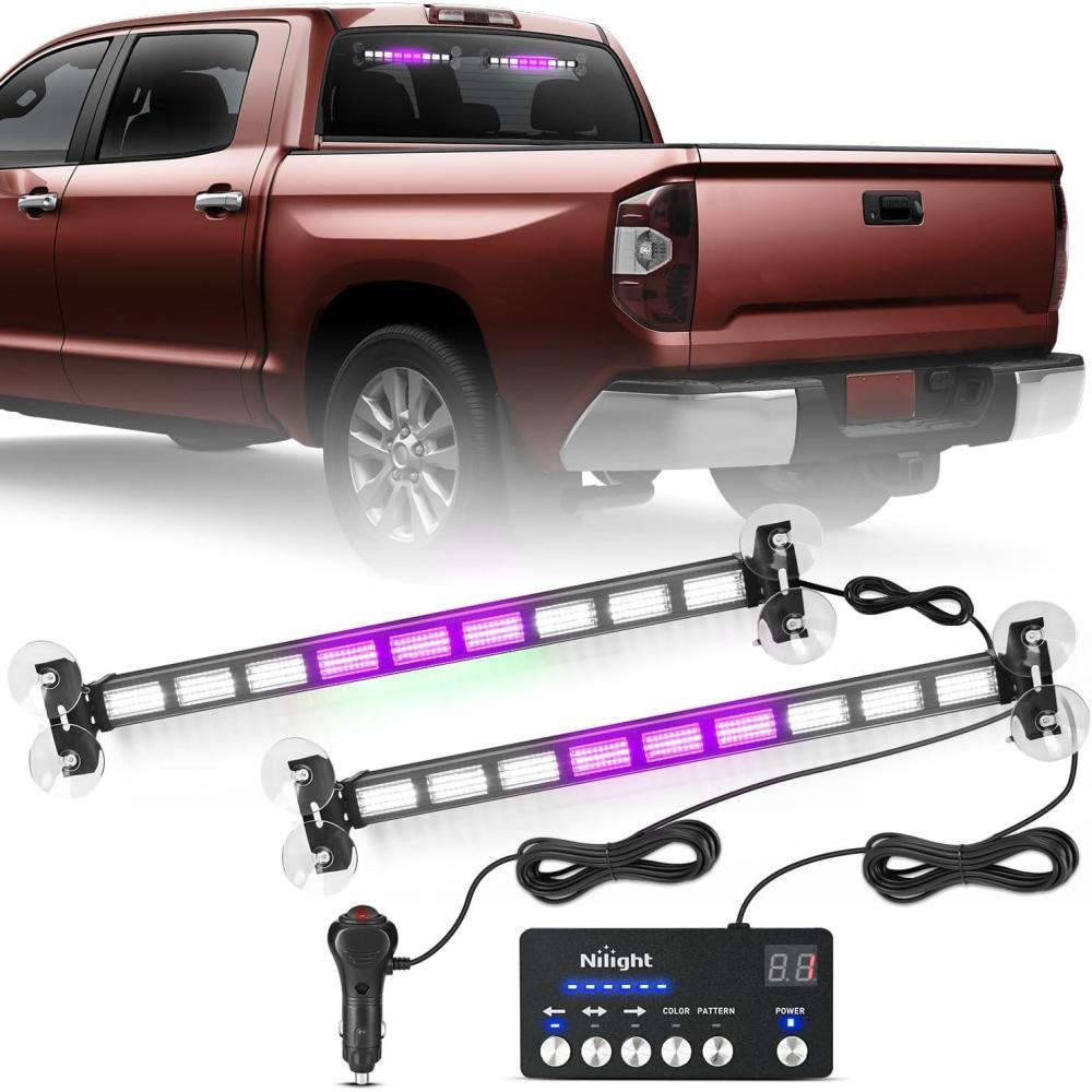 imageNilight 162 LED Traffic Advisor Strobe Light Bar 2in1 Amber Blue Emergency Warning Hazard Lights with Controller 4 Switchable Color 36 Flash Pattern for Trucks Cars Tow Plow Construction VehiclesPurple White