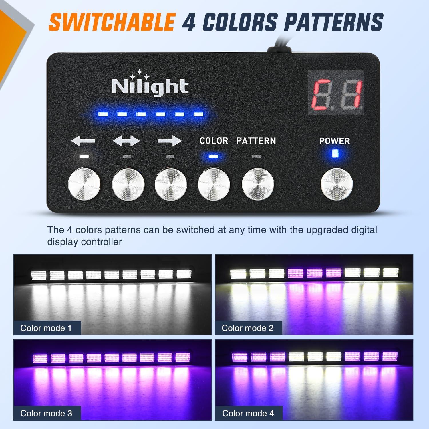 imageNilight 162 LED Traffic Advisor Strobe Light Bar 2in1 Amber Blue Emergency Warning Hazard Lights with Controller 4 Switchable Color 36 Flash Pattern for Trucks Cars Tow Plow Construction VehiclesGreen White