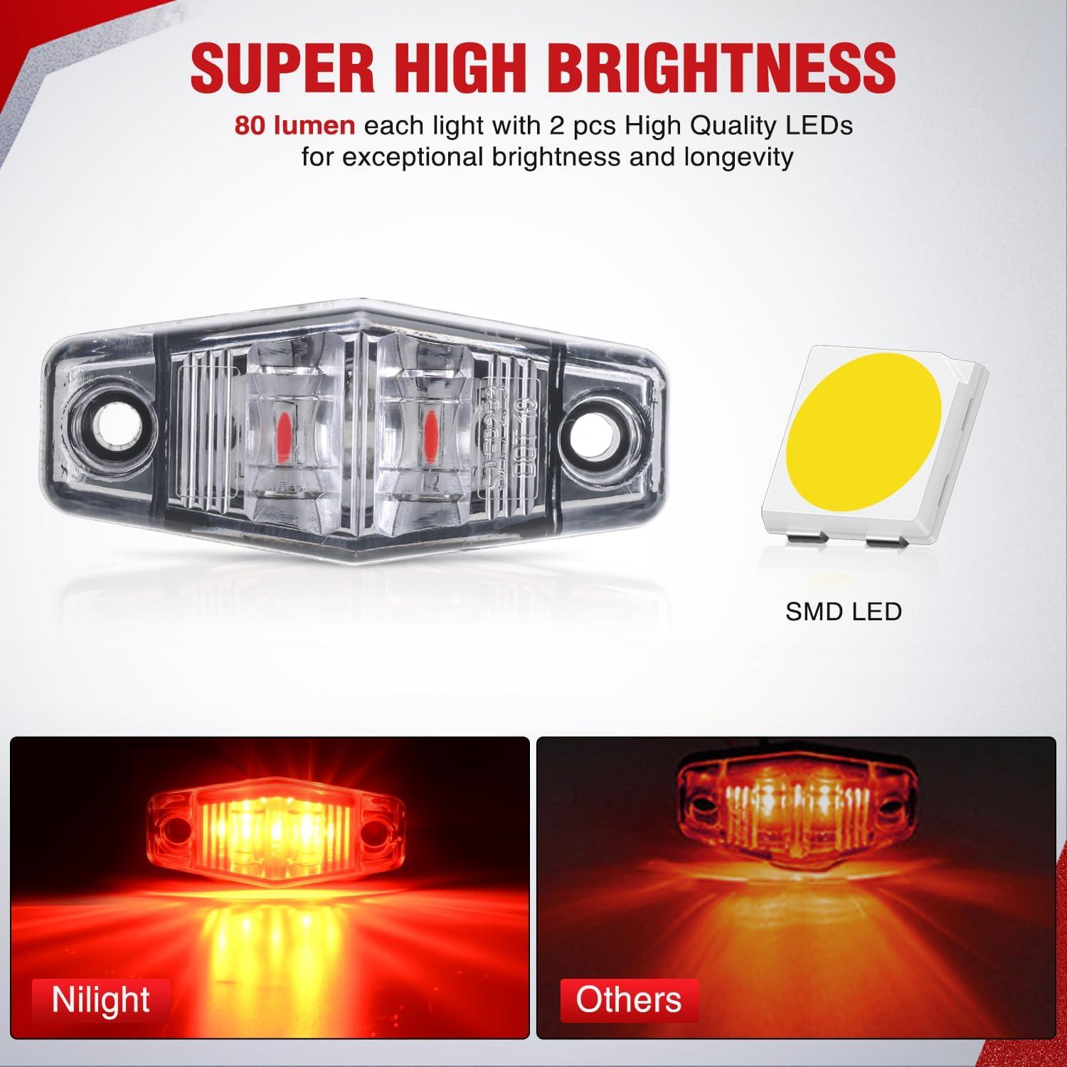 Wide Application: Designed for universal 12V systems, these lights are perfect for trucks, trailers, RVs, SUVs, vans, campers, motorhomes, boats, and buses. Ideal for use as side marker, clearance, identification, or fender lights