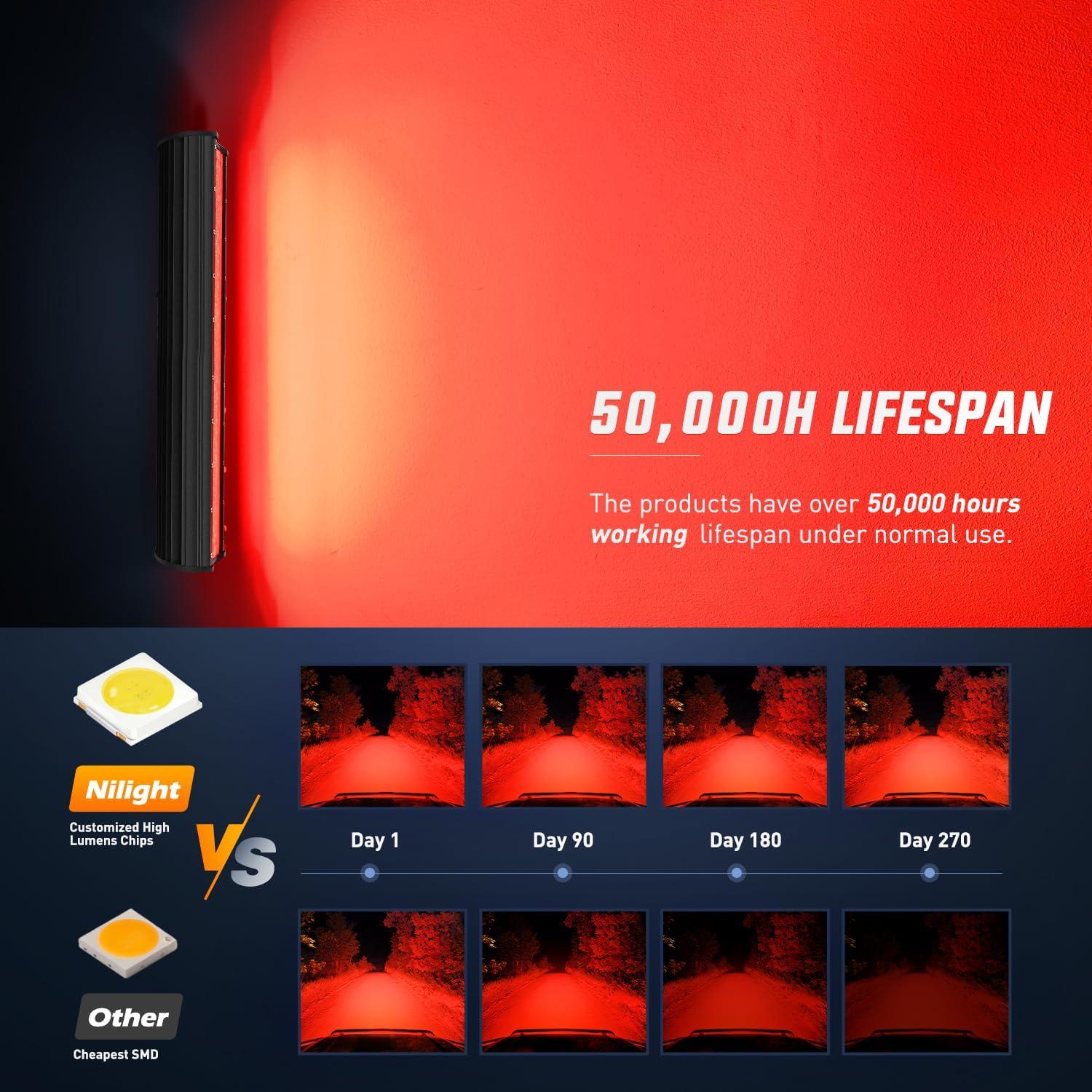 Nilight 20 Inch LED Light Bar Green Triple Row 420W Spot Flood Combo Off Road Driving Fog Fishing Hunting Emergency Safety Lighting for UTV Pick-up Van Boat Tractor(Red)
