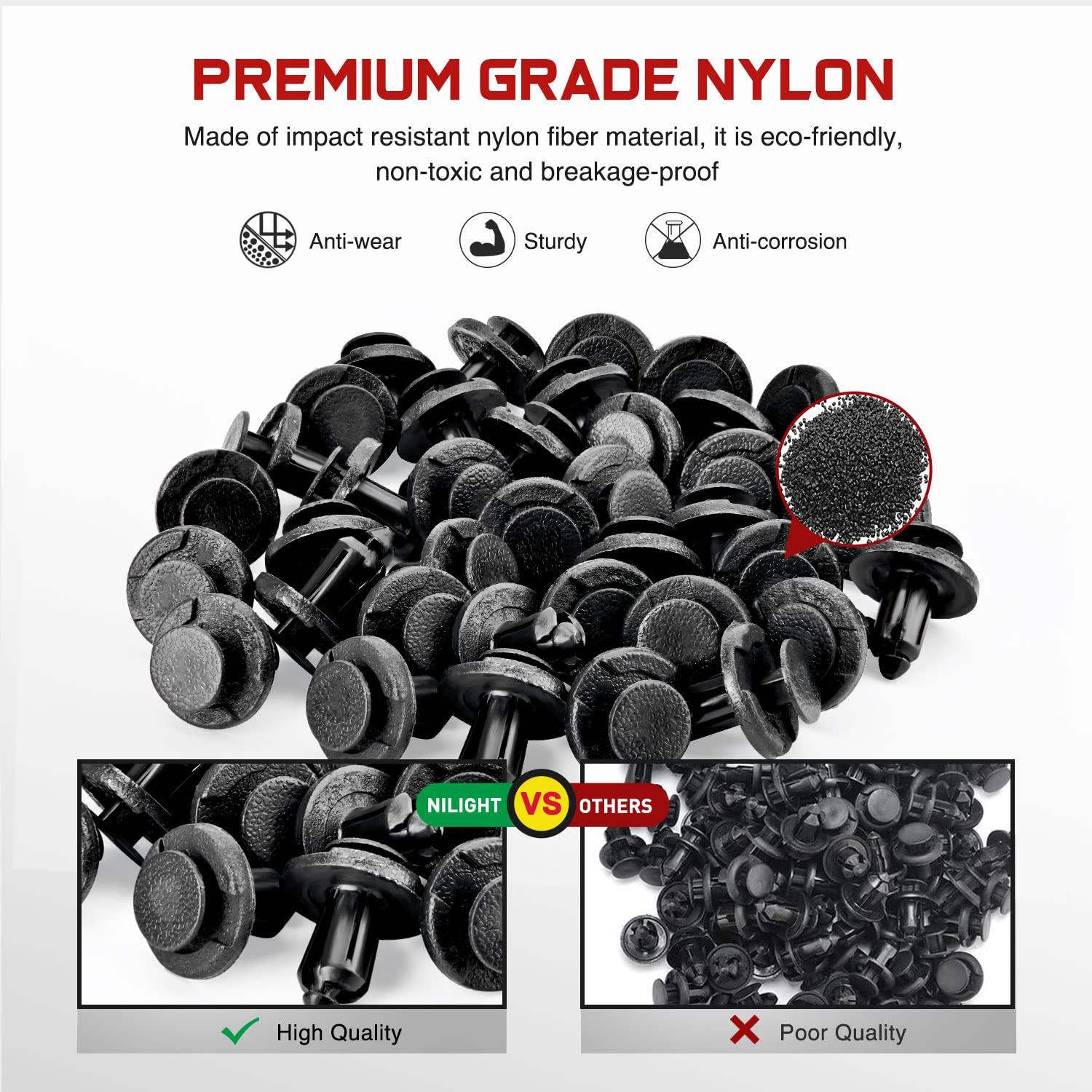 【PACKAGE INCLUDE】- Includes 30 pcs 6mm Clips ,30 pcs 7mm Clips, 30 pcs 8mm Clips, 50 pcs 8mm Push Clips, 30 pcs 9mm Clips, 30 pcs 10mm Clips.2 Years Warranty Honored by Nilight