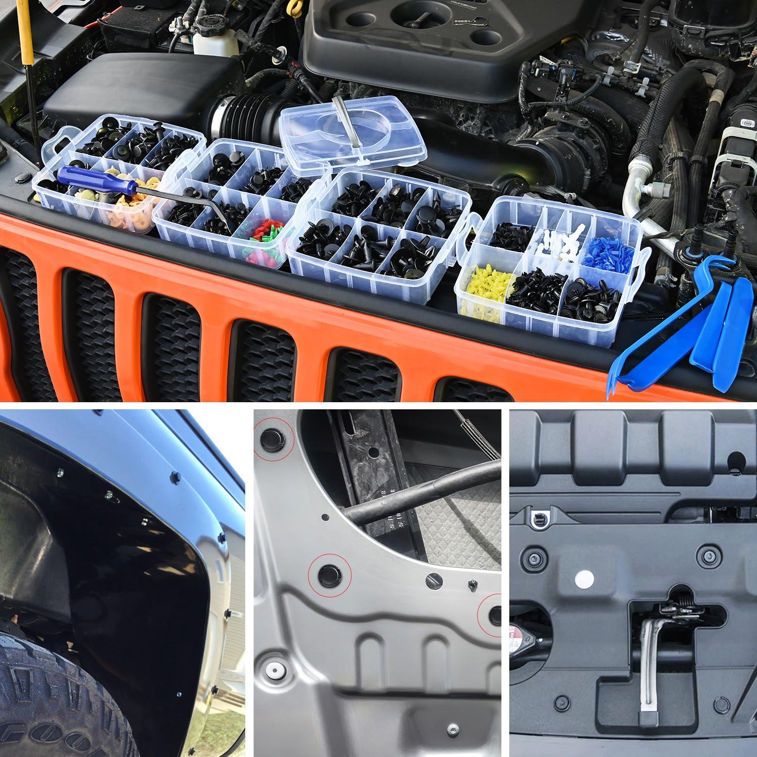20pcs × 1/4” (6.3mm) Hole Size Head Diameter: 17mm Stem Length: 15mm Black Nylon Mud Skirt Blind Rivets; 20pcs × 5/16” (8mm) Hole Size Head Diameter: 20mm Stem Length: 11mm Black Nylon Front Fender Push-Type Retainers; 20pcs × 5/16” (8mm) Hole Size Head Diameter: 20mm Stem Length: 20mm Black Nylon Air Baffle To Under Carriage Push-Type Retainers; 20pcs × 23/64” (9mm) Hole Size Head Diameter: 18mm Stem Length: 28mm Black Nylon Rear Bumper Cover Push-Type Retainers; 20pcs × 25/64” (10mm) Hole Size Head Diameter: 20mm Stem Length: 13mm Black Nylon Push-Type Retainers; 20pcs × 25/64” (10mm) Hole Size Head Diameter: 20mm Stem Length: 18mm Black Nylon Push-Type Retainers