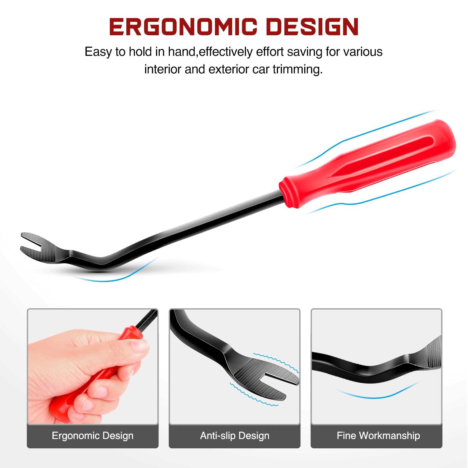 Bonus Fastener Remover:The fastener remover is corrosion-resistant and is made of chrome plated carbon steel. The ergonomic strong handle allows safe removal of metal or plastic clips