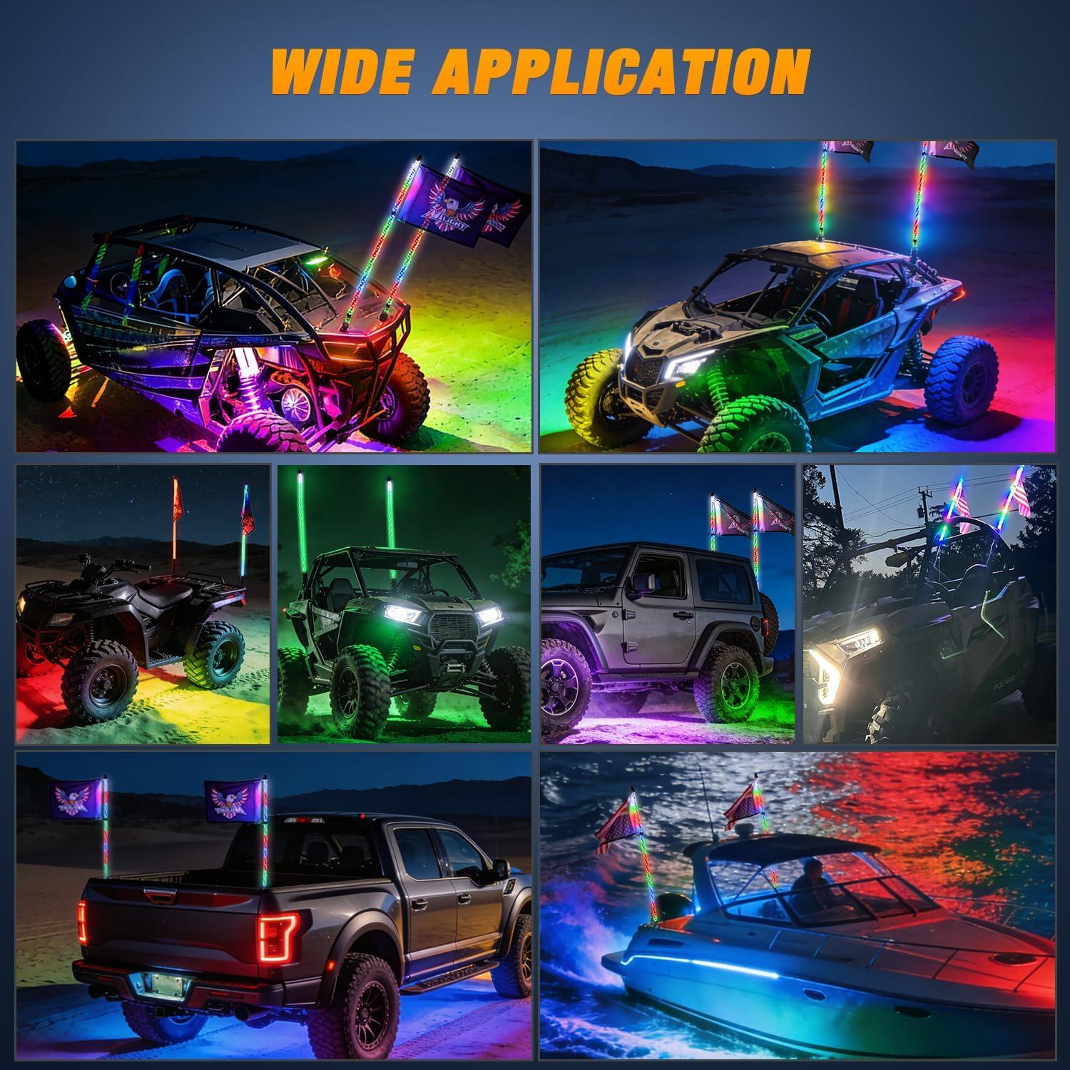 Advanced Safety Signaling: Built for safety as well as style, these whips function as auxiliary running lights. They automatically switch to specific colors for vehicle maneuvers: Red for braking, Amber for turn signals, and White for reverse/backup, providing crucial visibility to other riders in low-light conditions