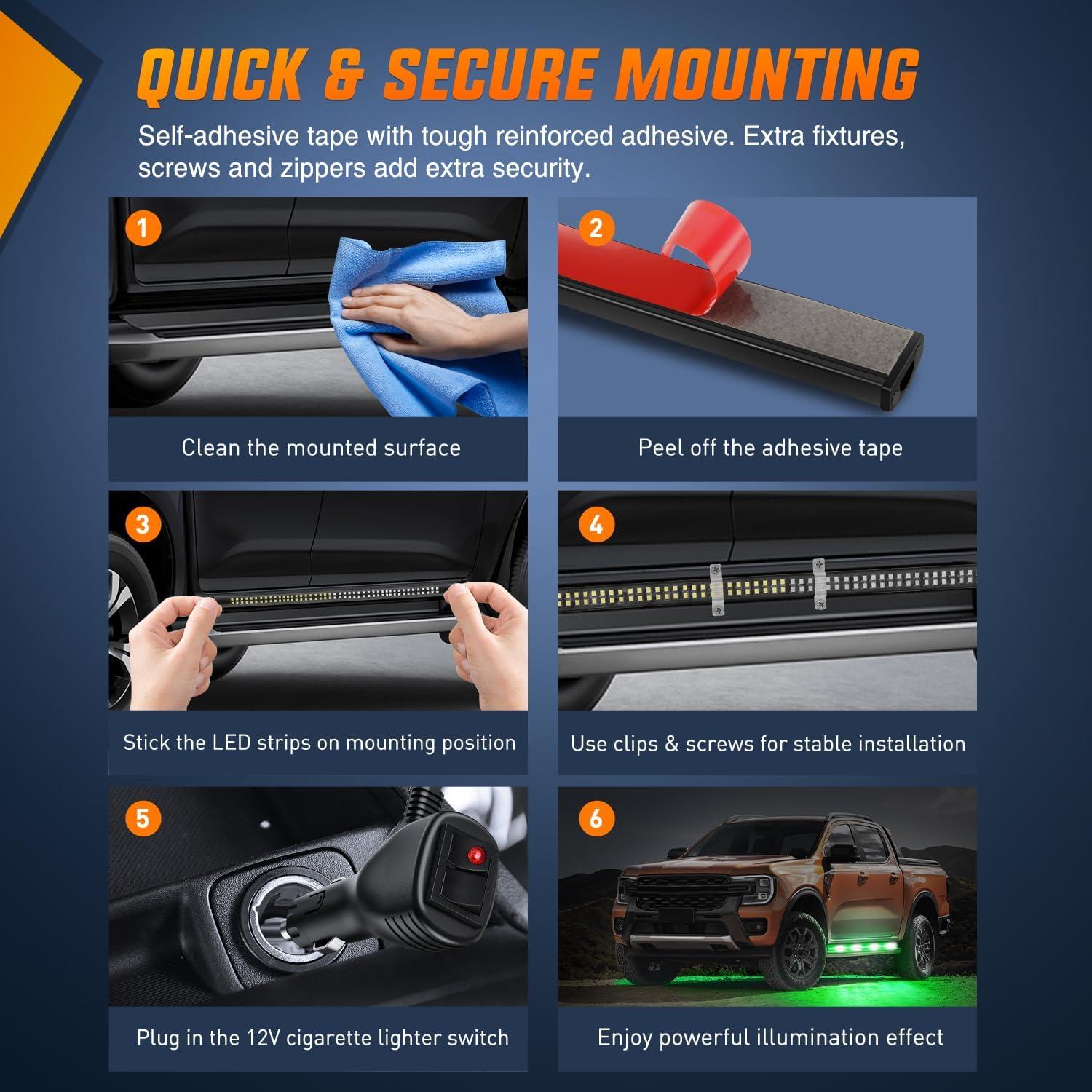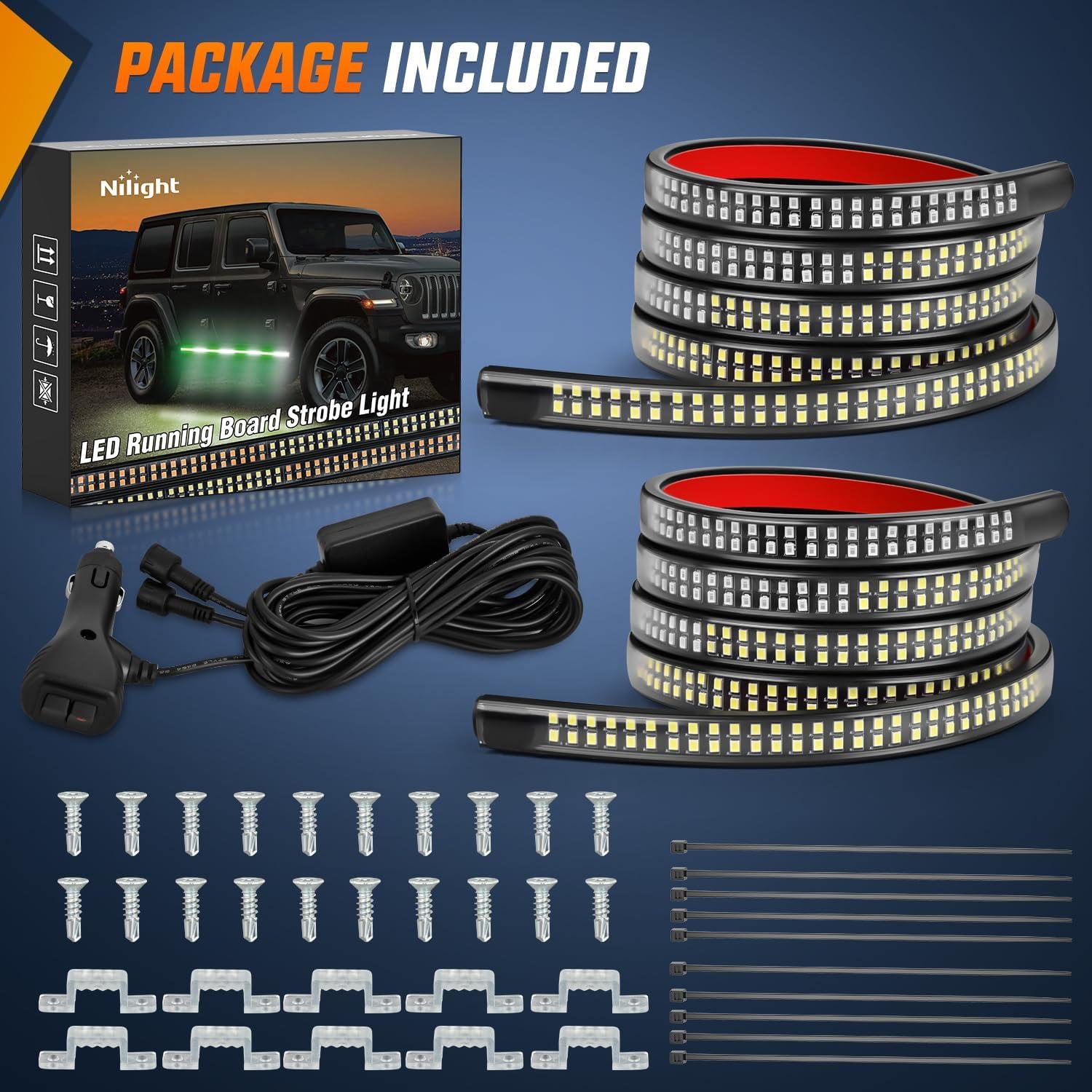 Safety & Reliability: Nilight 2PCS 70 inch Running Board Strobe Light Strip with up to 1152 high brightness LEDs provides excellent visibility day or night, ensuring that others can easily notice it, greatly improving driving safety. Turn heads and stay energized, even in stormy weather!