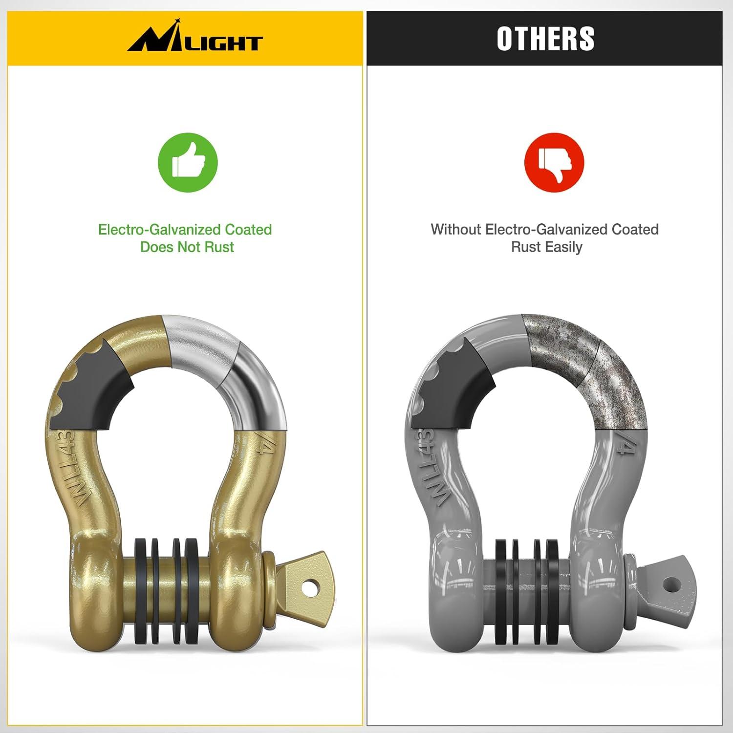 imageNilight 34quot D Ring Shackle with Towing Pulley 2 Pack 475 Ton 9500 Lbs 78quot Pin Heavy Duty Off Road Recovery Shackle with Isolators Washer Kit for Jeep Truck Tractor Vehicle ATV UTV GreenGold