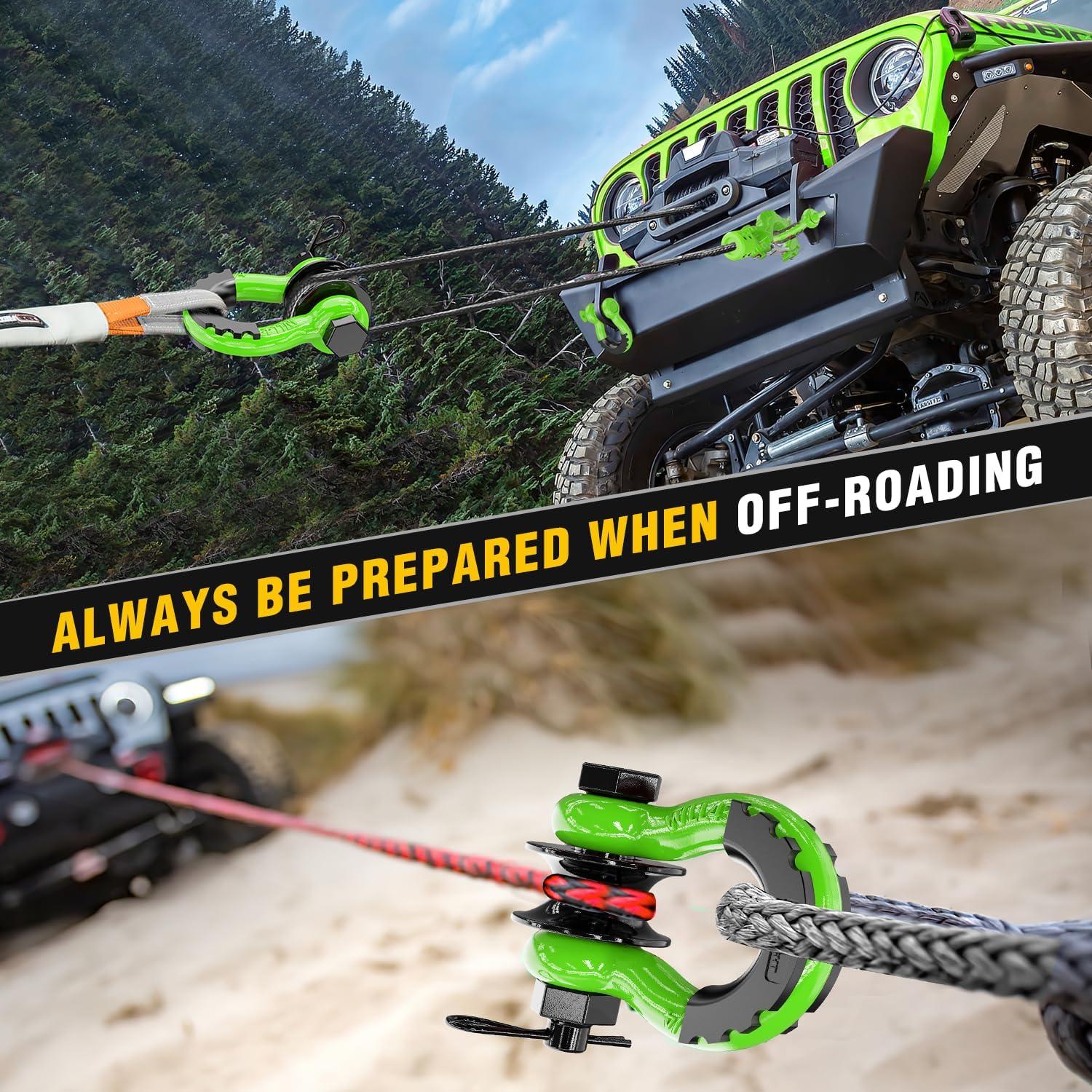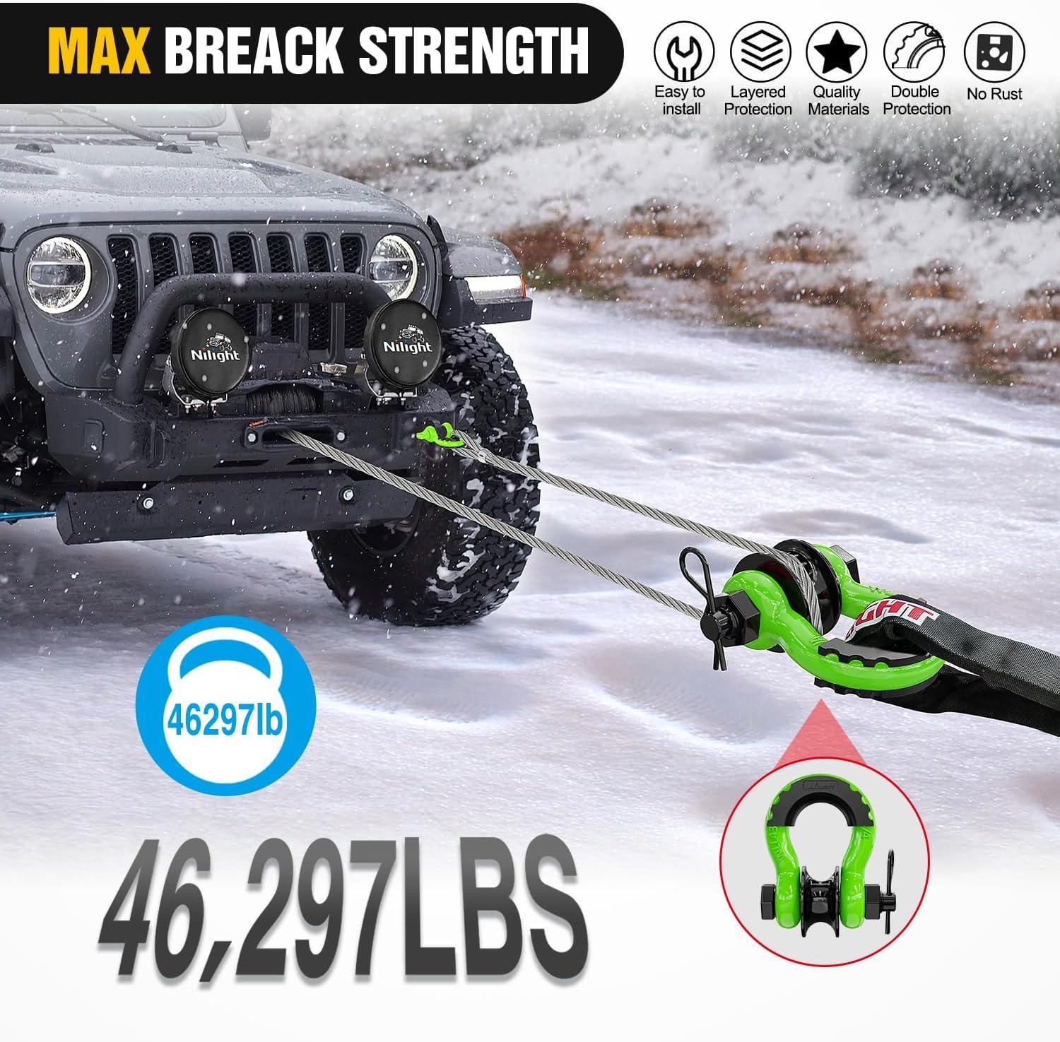 imageNilight 34quot D Ring Shackle with Towing Pulley 2 Pack 475 Ton 9500 Lbs 78quot Pin Heavy Duty Off Road Recovery Shackle with Isolators Washer Kit for Jeep Truck Tractor Vehicle ATV UTV GreenGreen