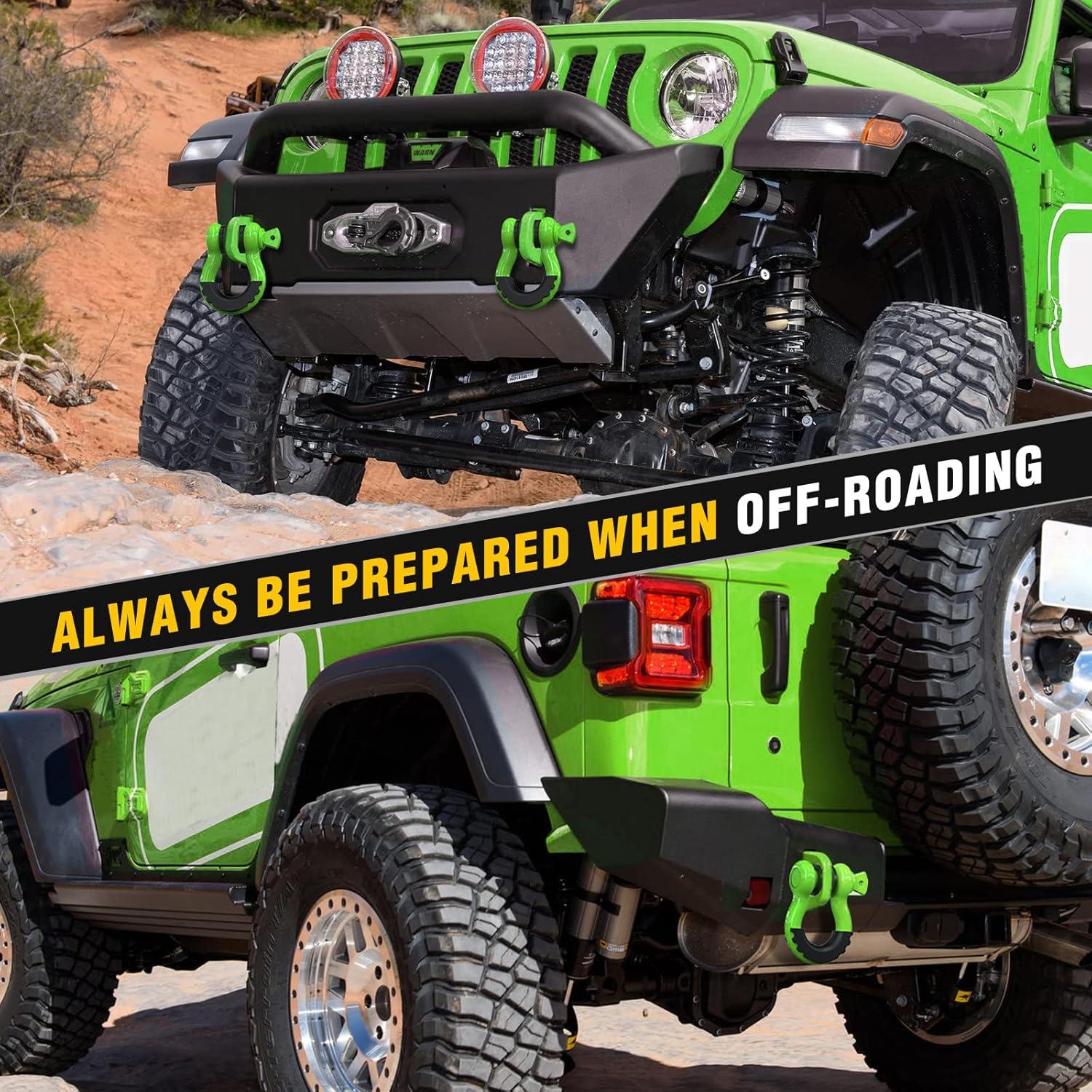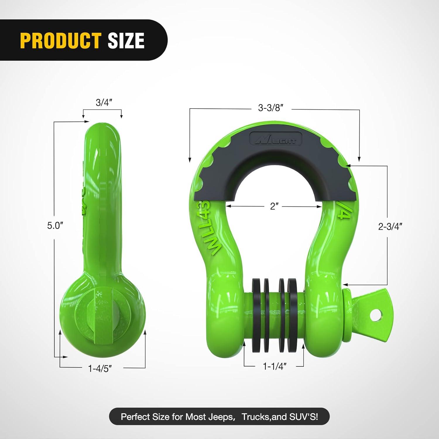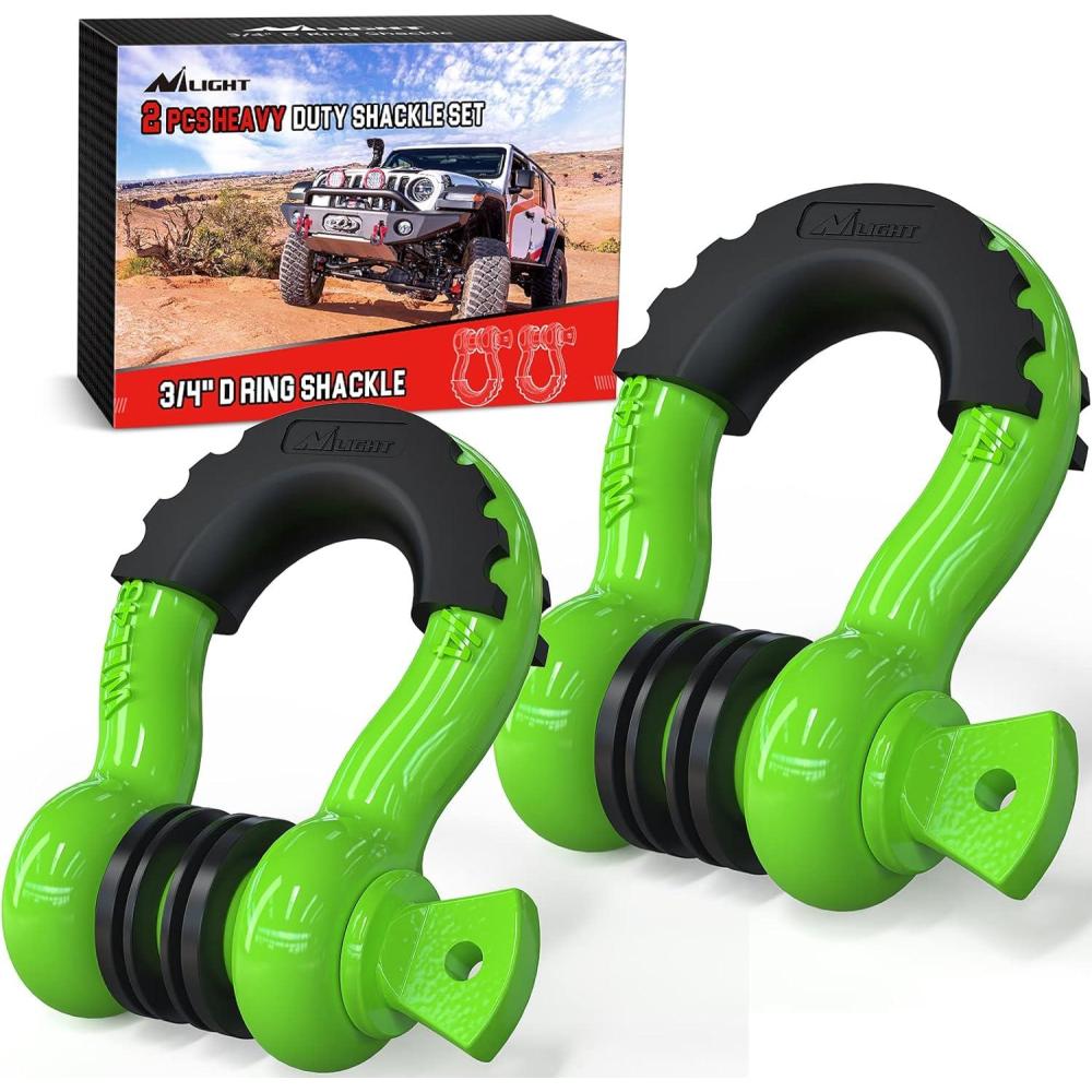 Nilight 3/4" D Ring Shackle with Towing Pulley 2 Pack 4.75 Ton (9500 Lbs) 7/8" Pin Heavy Duty Off Road Recovery Shackle with Isolators Washer Kit for Jeep Truck Tractor Vehicle ATV UTV, Green(Green)