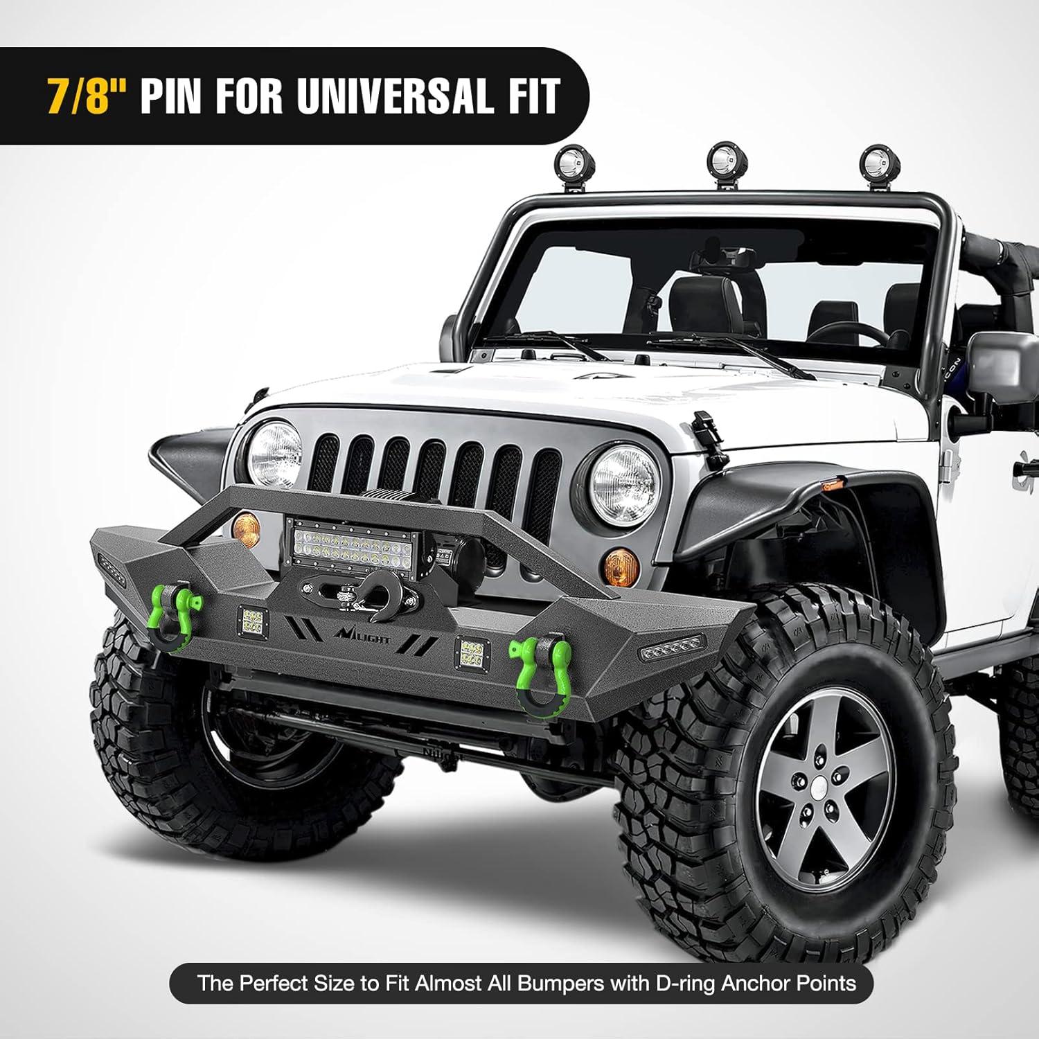 Nilight 3/4″ D Ring Shackle with Towing Pulley 2 Pack 4.75 Ton (9500 Lbs) 7/8″ Pin Heavy Duty Off Road Recovery Shackle with Isolators Washer Kit for Jeep Truck Tractor Vehicle ATV UTV, Green(Gray)