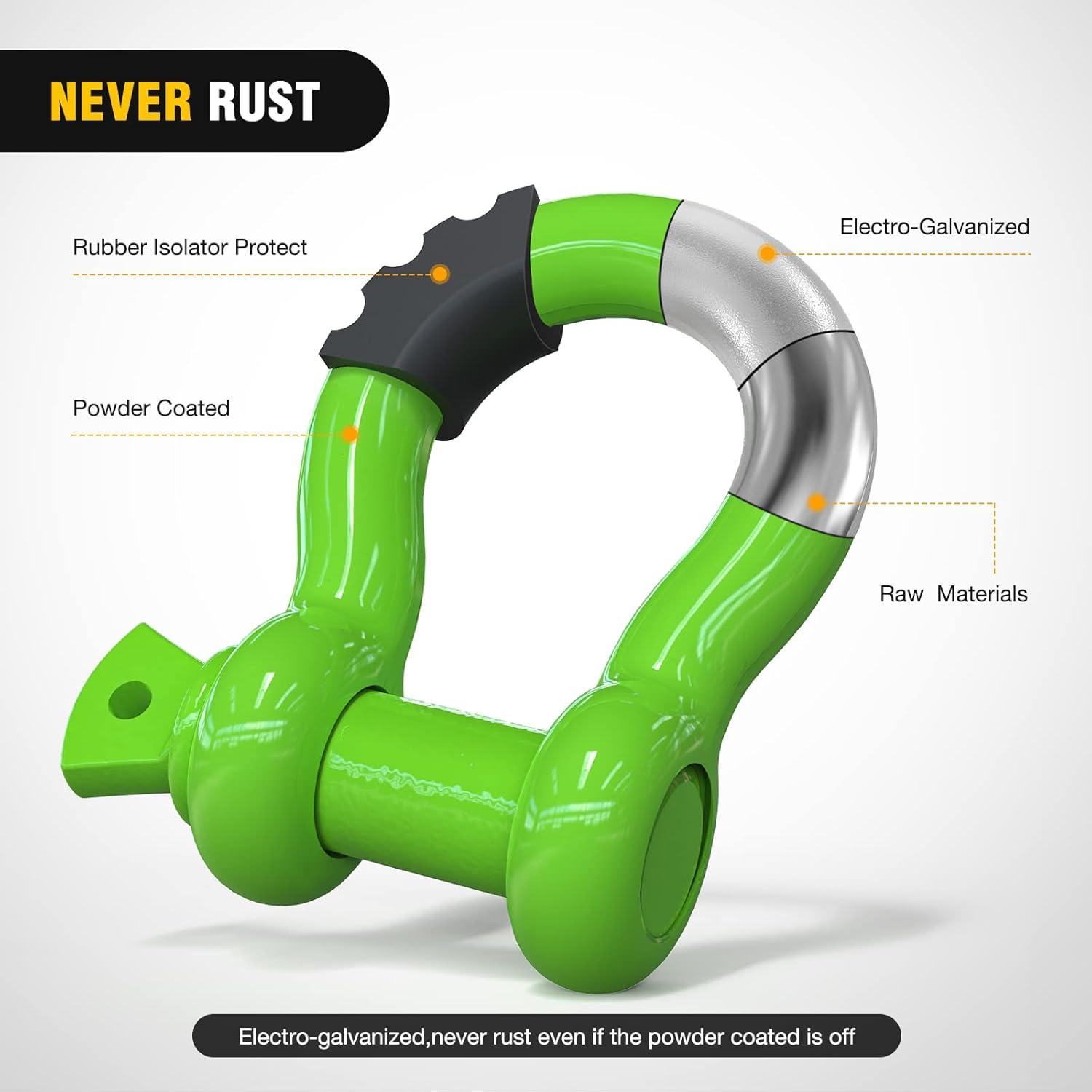 imageNilight 34quot D Ring Shackle with Towing Pulley 2 Pack 475 Ton 9500 Lbs 78quot Pin Heavy Duty Off Road Recovery Shackle with Isolators Washer Kit for Jeep Truck Tractor Vehicle ATV UTV GreenGreen