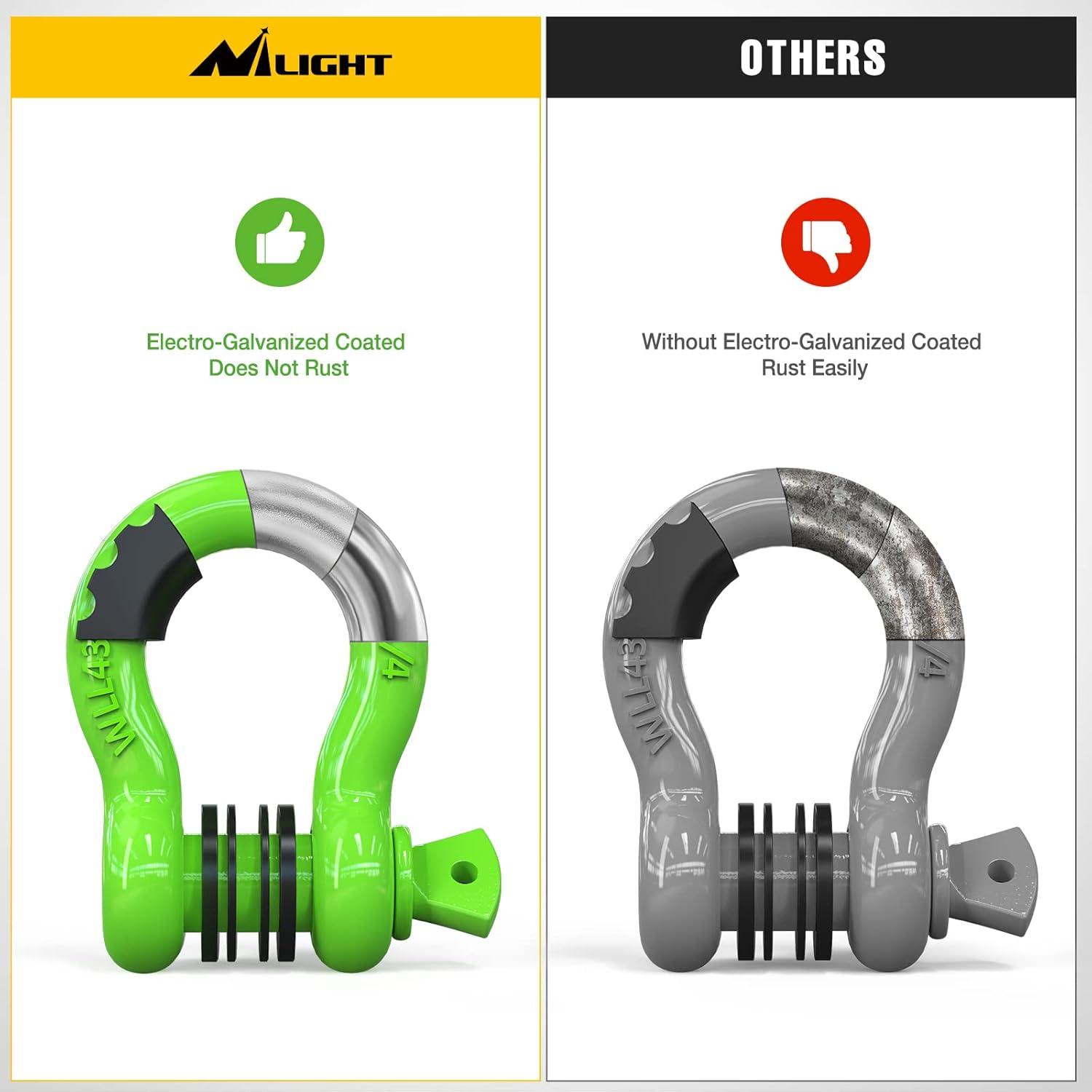 imageNilight 34quot D Ring Shackle with Towing Pulley 2 Pack 475 Ton 9500 Lbs 78quot Pin Heavy Duty Off Road Recovery Shackle with Isolators Washer Kit for Jeep Truck Tractor Vehicle ATV UTV GreenGreen wTowing Pulley