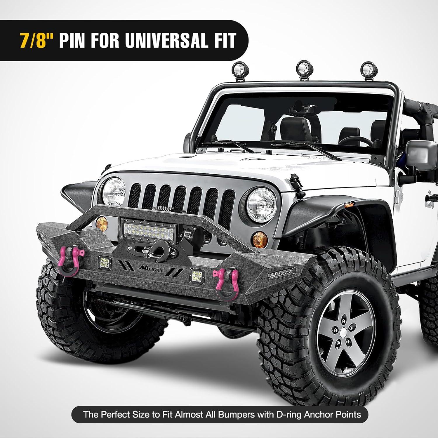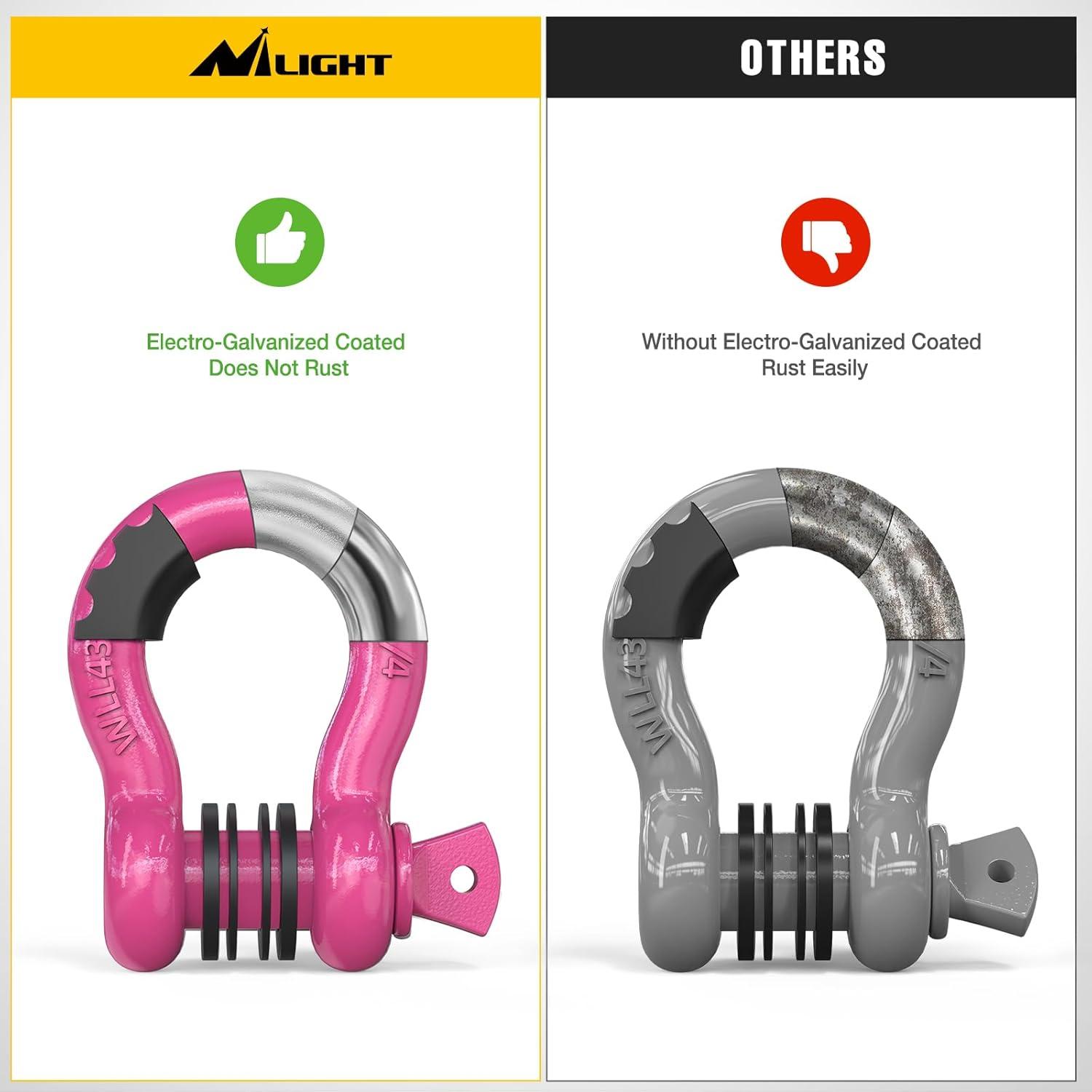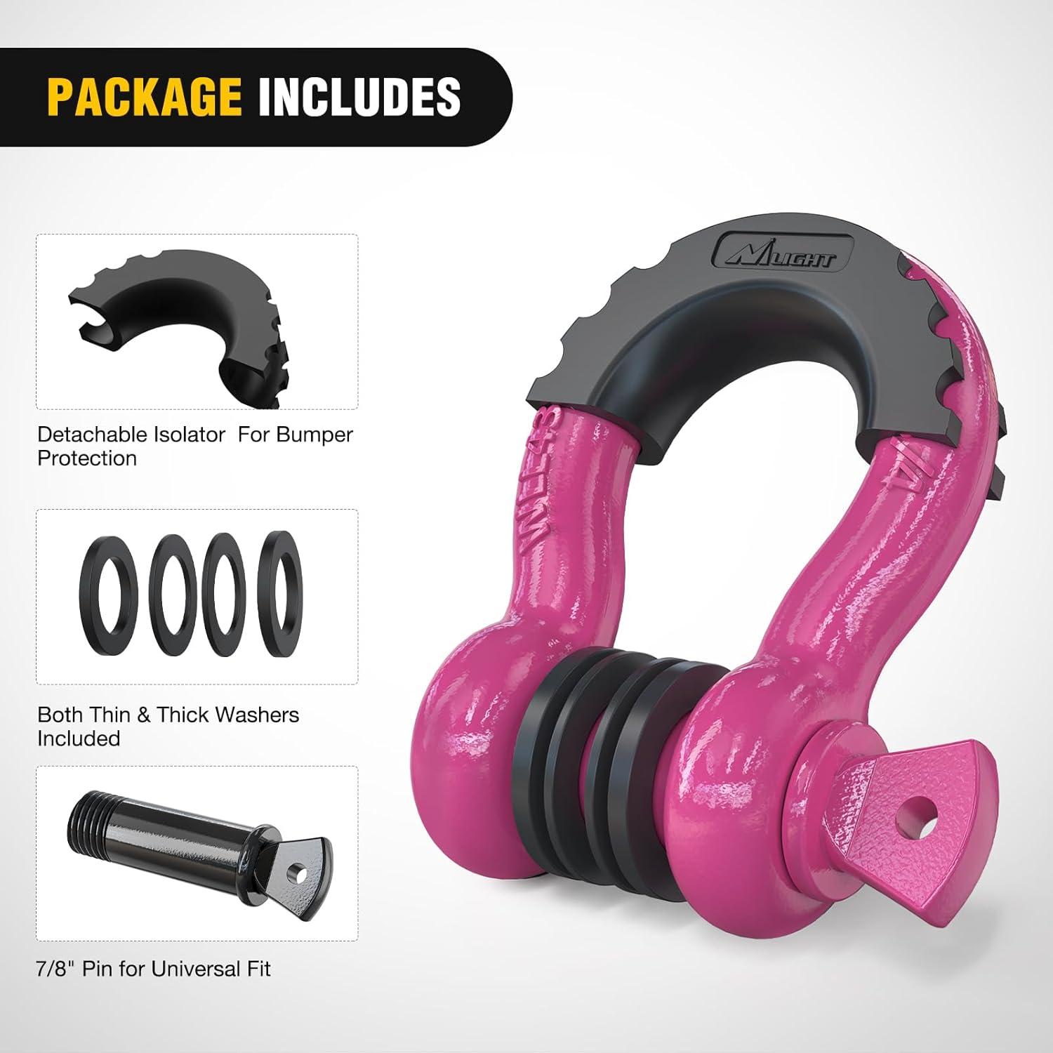 Nilight 3/4″ D Ring Shackle with Towing Pulley 2 Pack 4.75 Ton (9500 Lbs) 7/8″ Pin Heavy Duty Off Road Recovery Shackle with Isolators Washer Kit for Jeep Truck Tractor Vehicle ATV UTV, Green(Magenta)