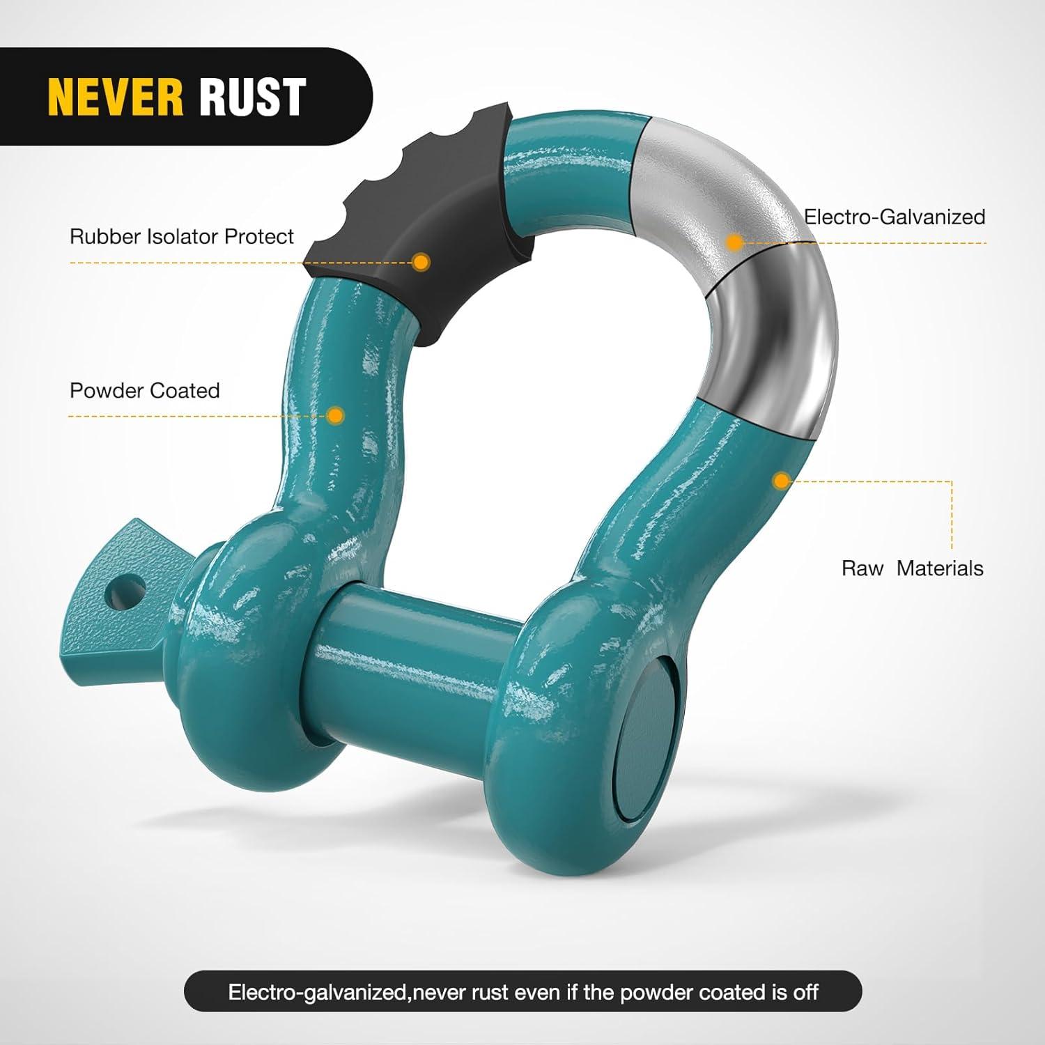 imageNilight 34quot D Ring Shackle with Towing Pulley 2 Pack 475 Ton 9500 Lbs 78quot Pin Heavy Duty Off Road Recovery Shackle with Isolators Washer Kit for Jeep Truck Tractor Vehicle ATV UTV GreenTurquoise Green