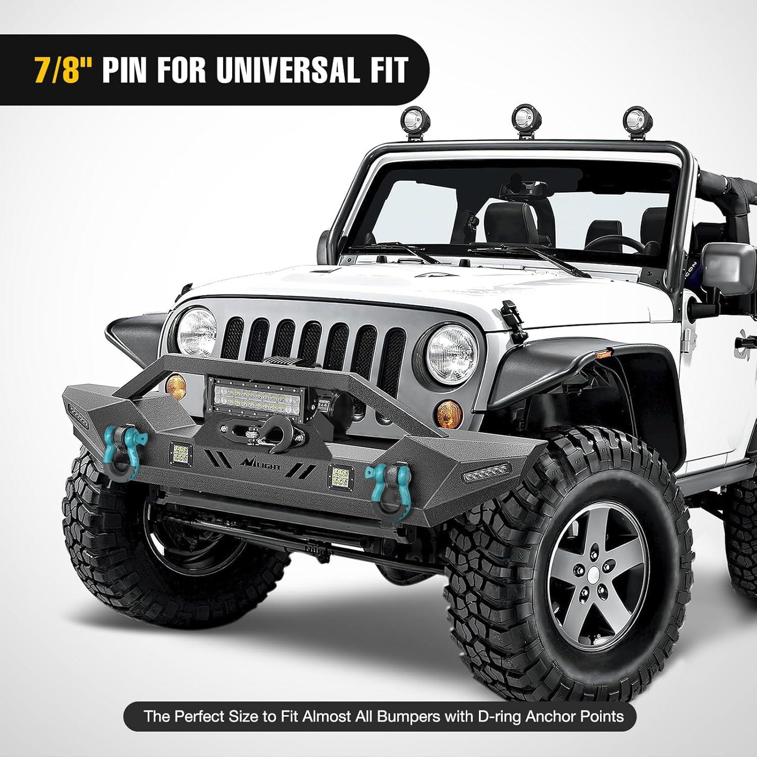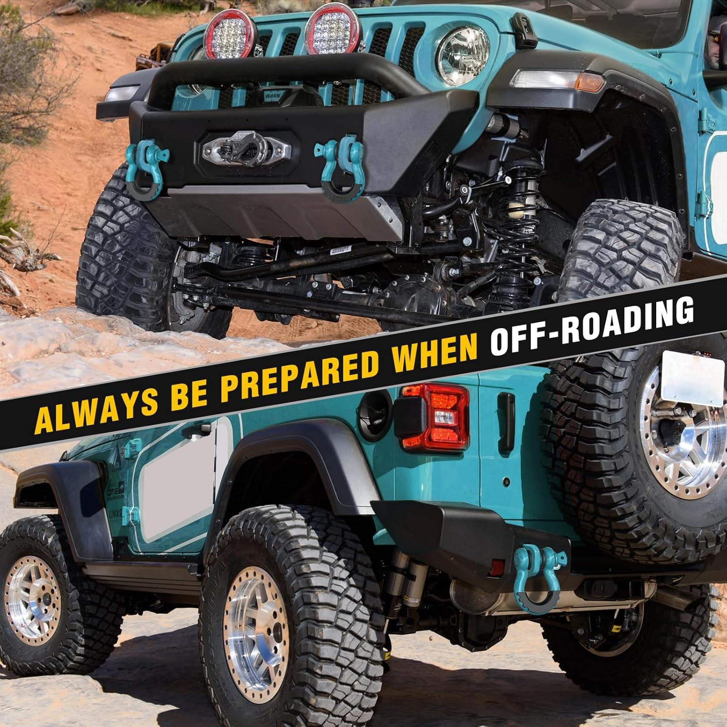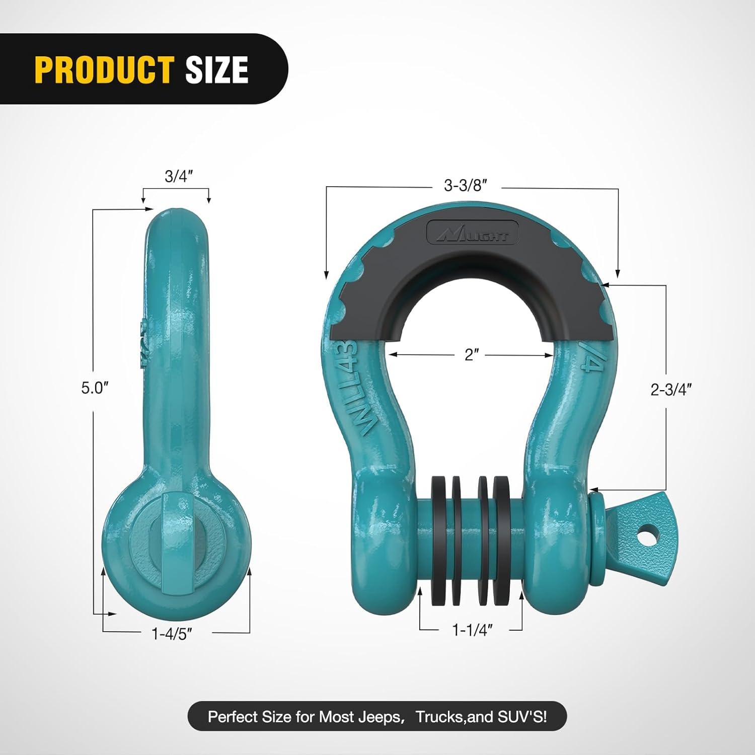 【 UNIVERSAL D RING SHACKLES 】 – 3/4″ d-ring shackles 4.75 Ton (9,500 Lbs),with a Towing Pulley, an Industry Standard 7/8″ Screw Pin , and an outer nut that avoids fall. The insurance pin provides additional protection.