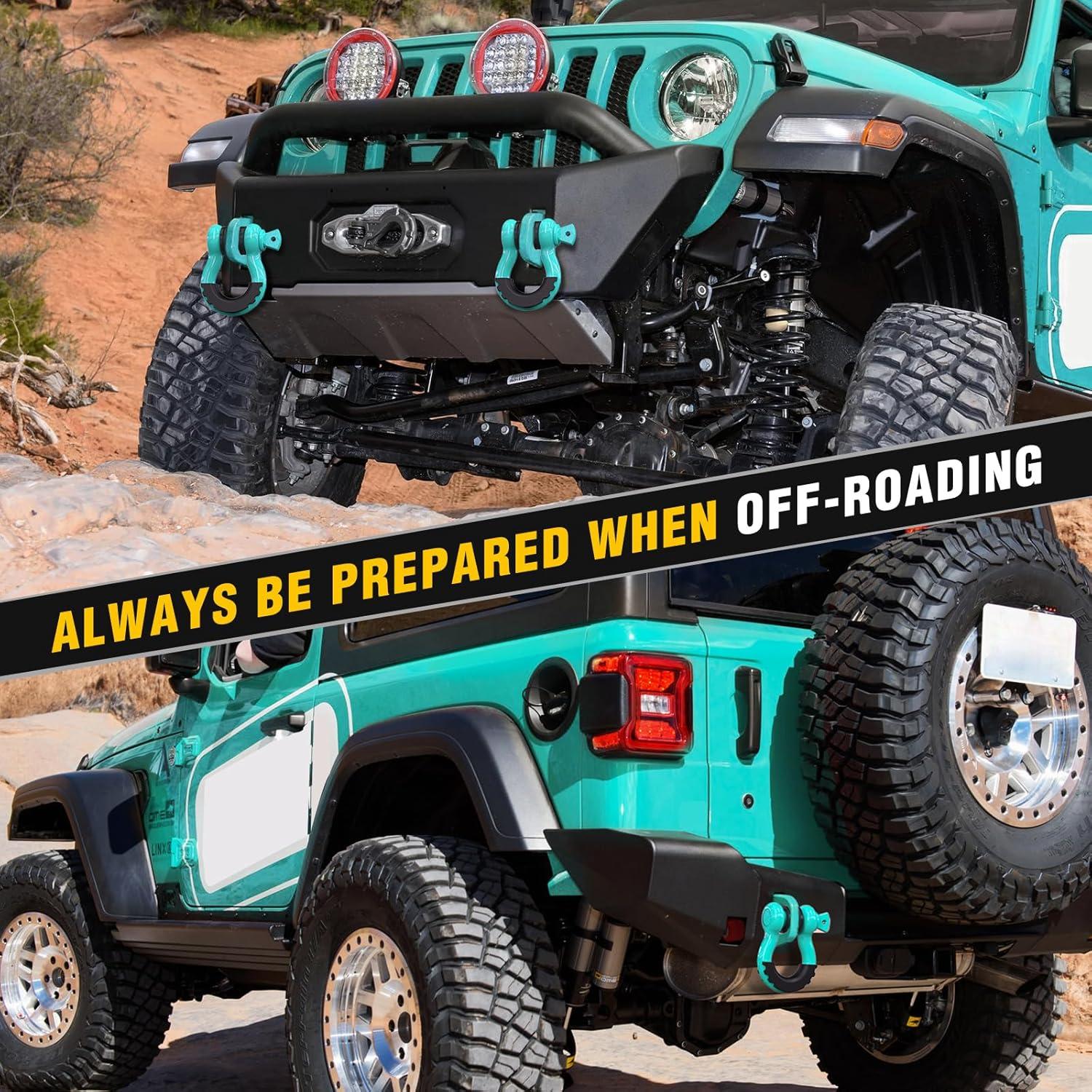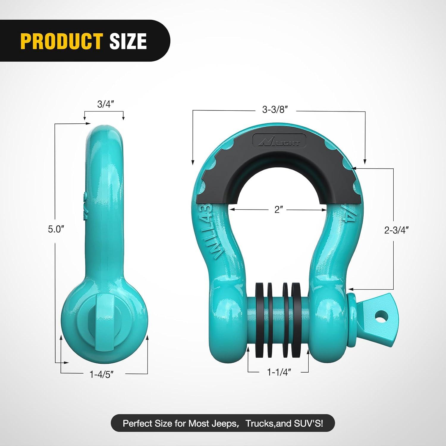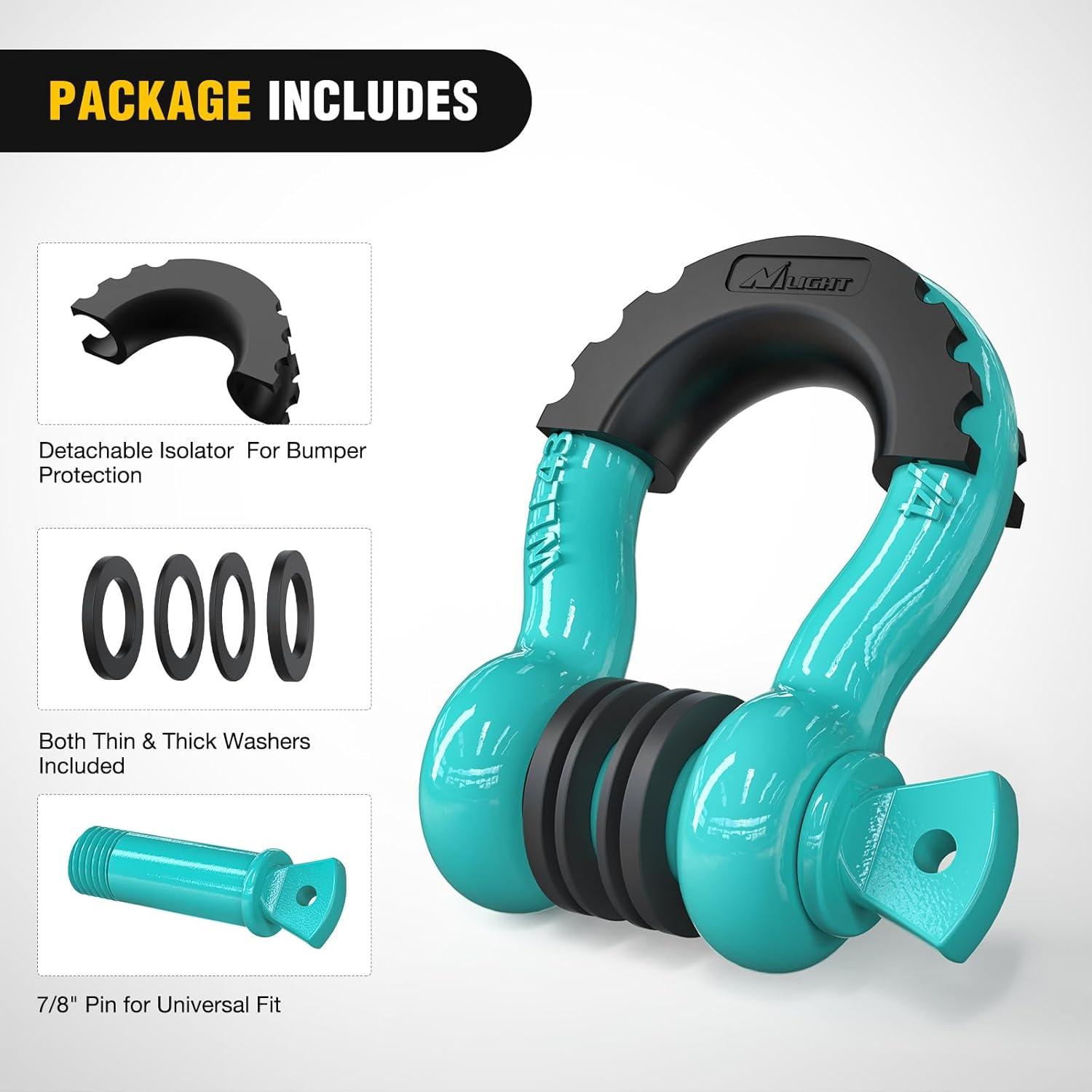 imageNilight 34quot D Ring Shackle with Towing Pulley 2 Pack 475 Ton 9500 Lbs 78quot Pin Heavy Duty Off Road Recovery Shackle with Isolators Washer Kit for Jeep Truck Tractor Vehicle ATV UTV GreenTurquoise Green
