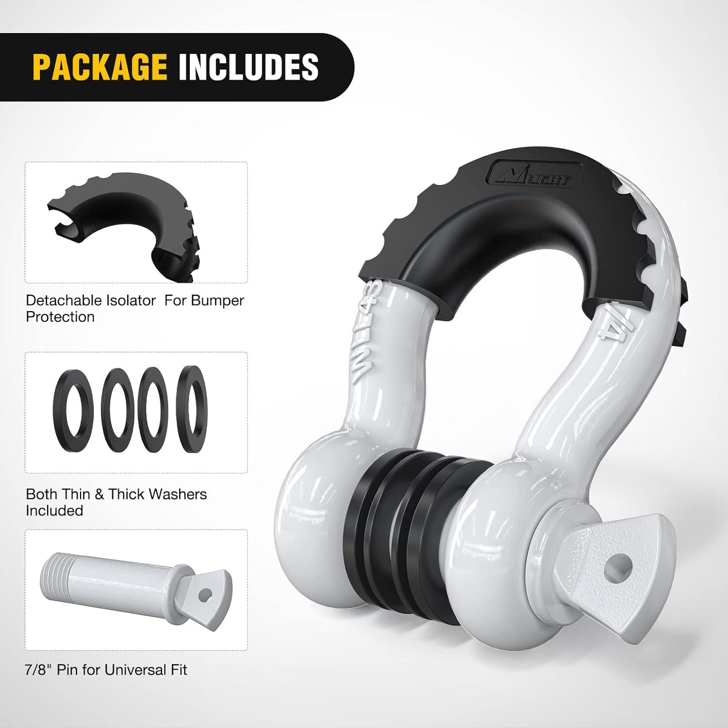 imageNilight 34quot D Ring Shackle with Towing Pulley 2 Pack 475 Ton 9500 Lbs 78quot Pin Heavy Duty Off Road Recovery Shackle with Isolators Washer Kit for Jeep Truck Tractor Vehicle ATV UTV GreenWhite