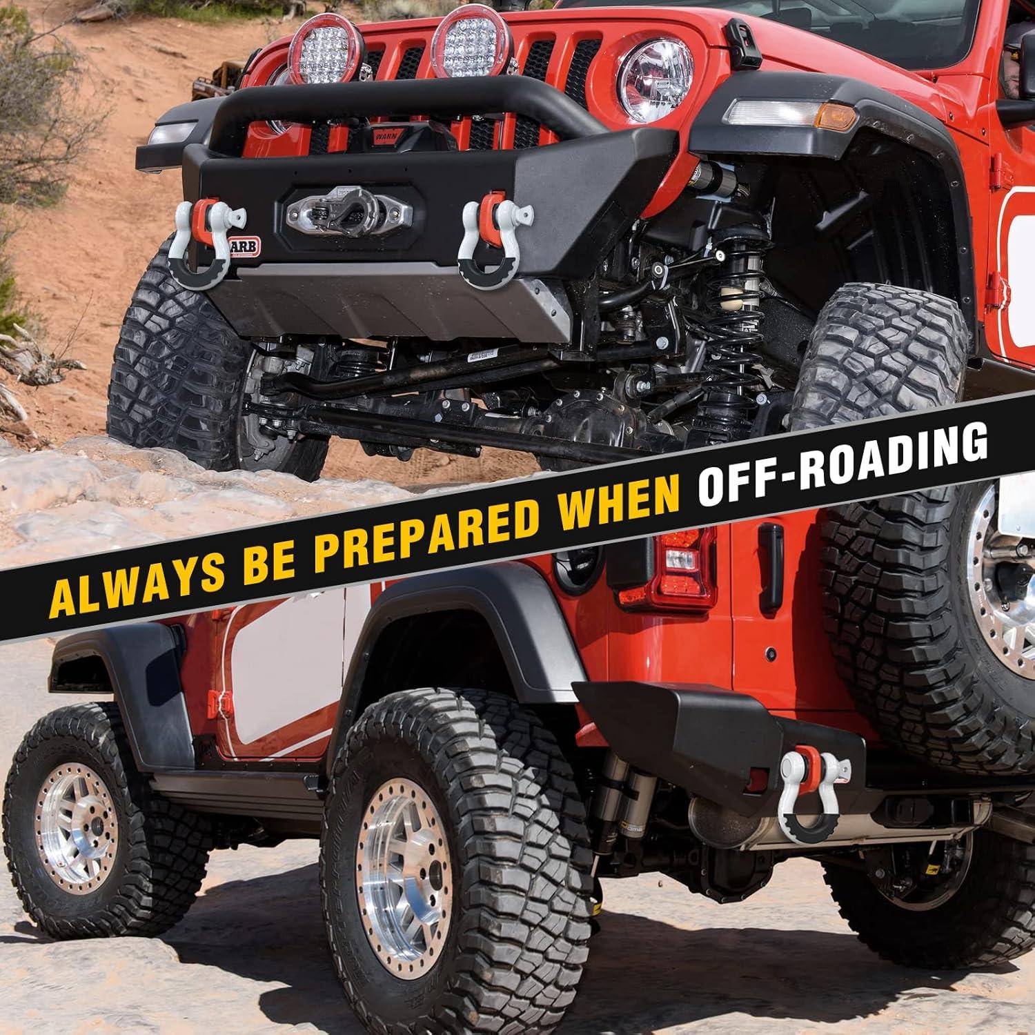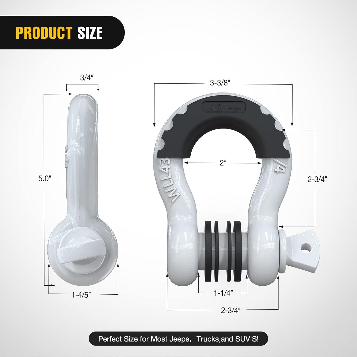 【 UNIVERSAL D RING SHACKLES 】 – 3/4″ d-ring shackles 4.75 Ton (9,500 Lbs),with a Towing Pulley, an Industry Standard 7/8″ Screw Pin , and an outer nut that avoids fall. The insurance pin provides additional protection.