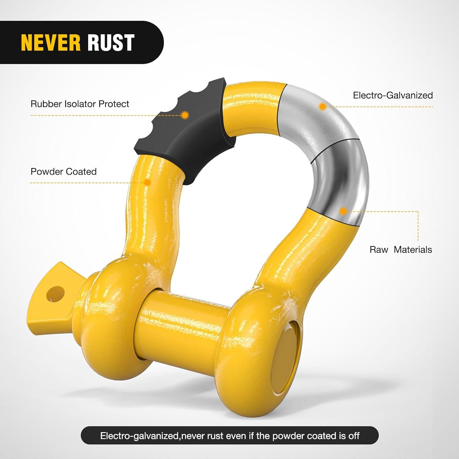 imageNilight 34quot D Ring Shackle with Towing Pulley 2 Pack 475 Ton 9500 Lbs 78quot Pin Heavy Duty Off Road Recovery Shackle with Isolators Washer Kit for Jeep Truck Tractor Vehicle ATV UTV GreenYellow