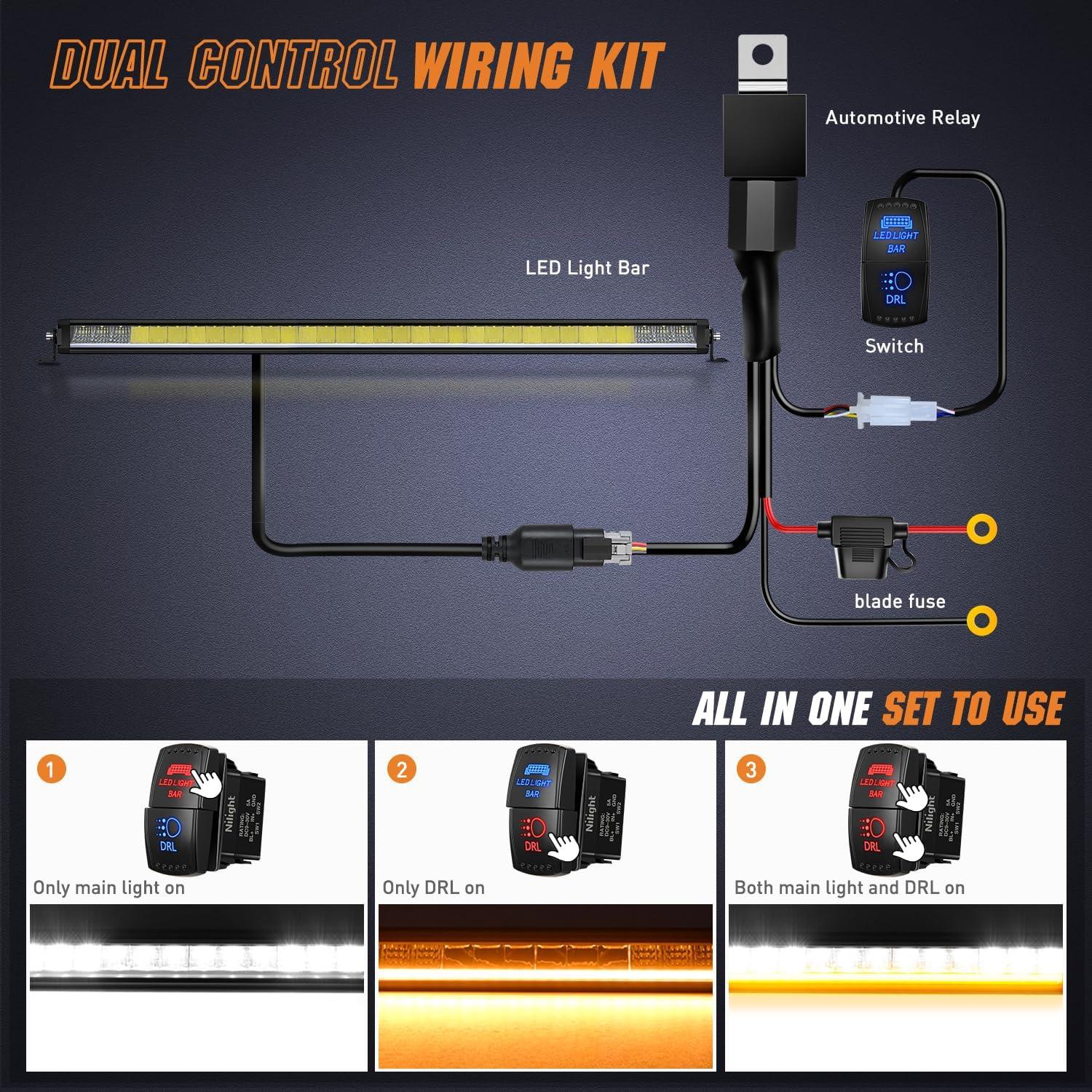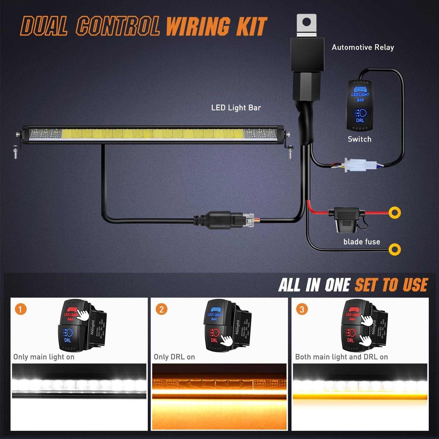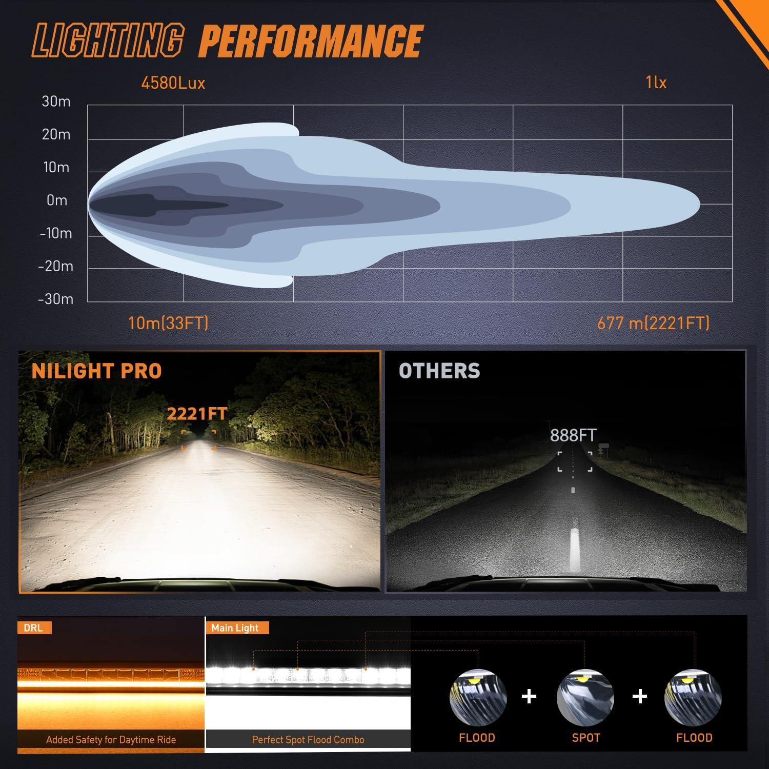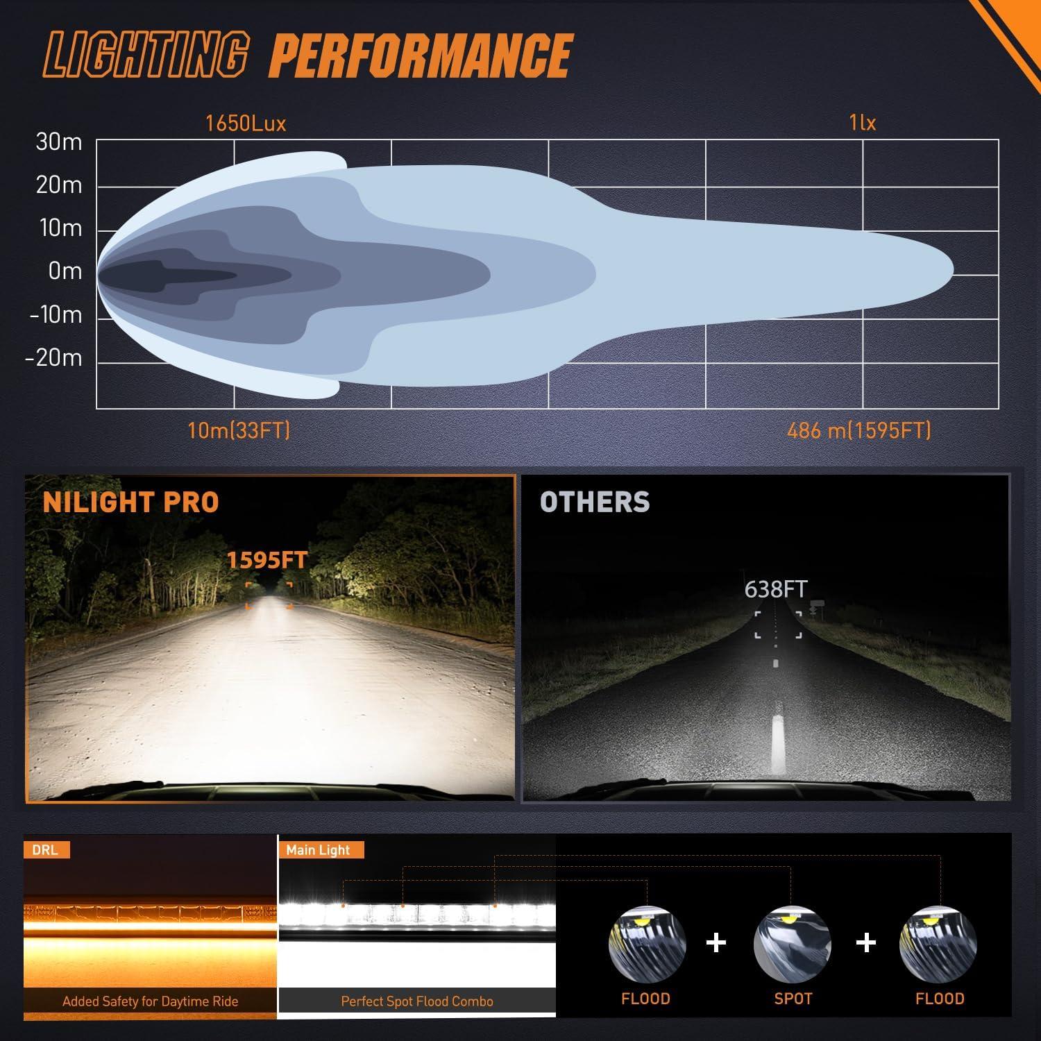 Nilight 30 Inch LED Light Bar 120W 13000LM Anti-Glare Flood Spot Combo DRL Offroad Driving Lamps IP68 w/ 16AWG DT Wiring Kit for Pickup Truck SUV ATV UTV Boat 4x4 Jeep(Amber DRL)