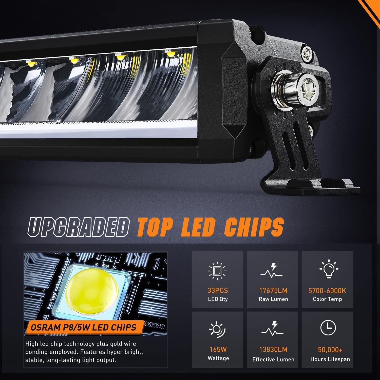Light Dimension: 15.55” Lx2.0” W x2.36” T Hole to Hole Length: 32.08” LED Chips: Osram P8/5W led chips