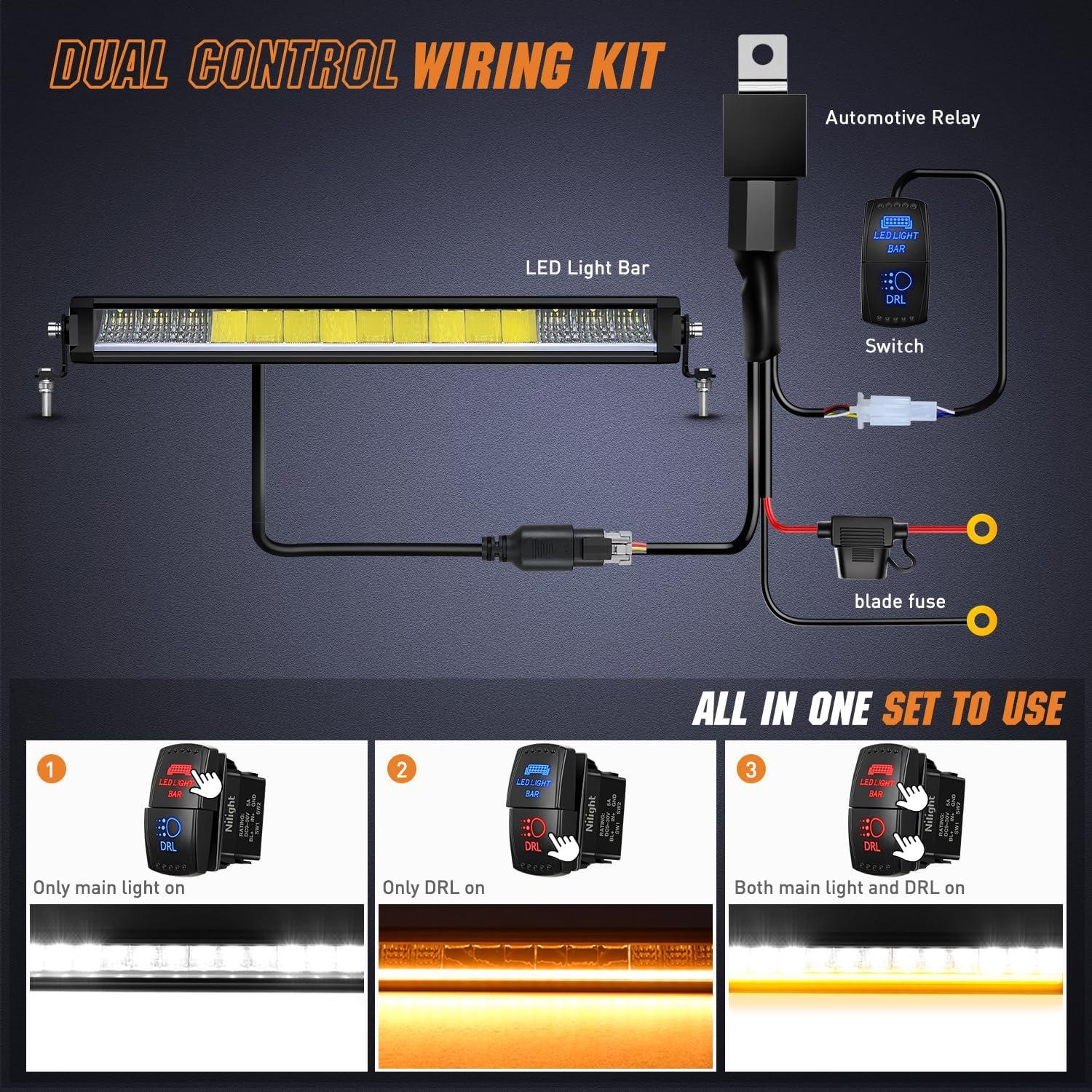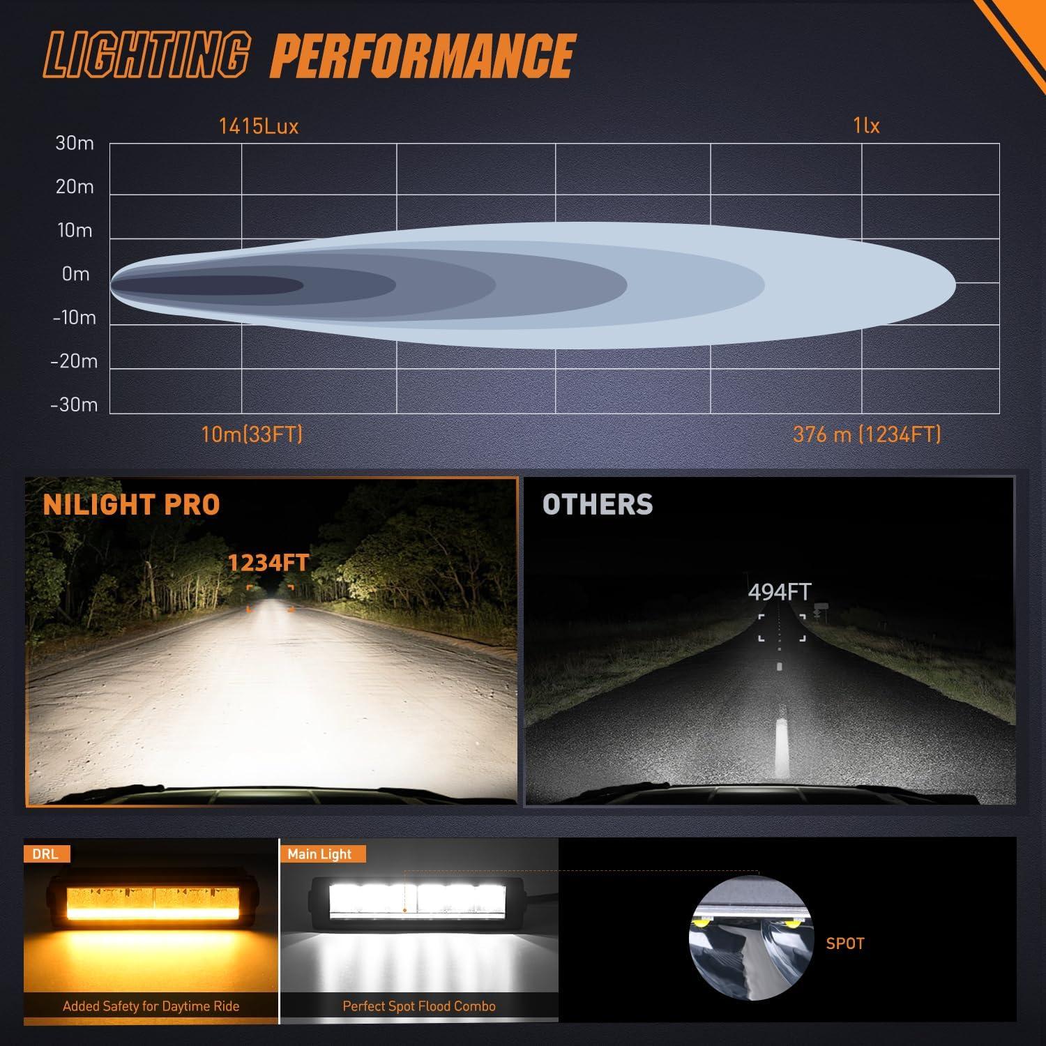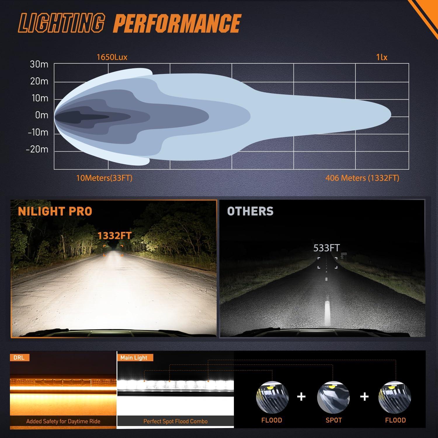 imageNilight 30 Inch LED Light Bar 120W 13000LM AntiGlare Flood Spot Combo DRL Offroad Driving Lamps IP68 w 16AWG DT Wiring Kit for Pickup Truck SUV ATV UTV Boat 4x4 JeepAmber DRL