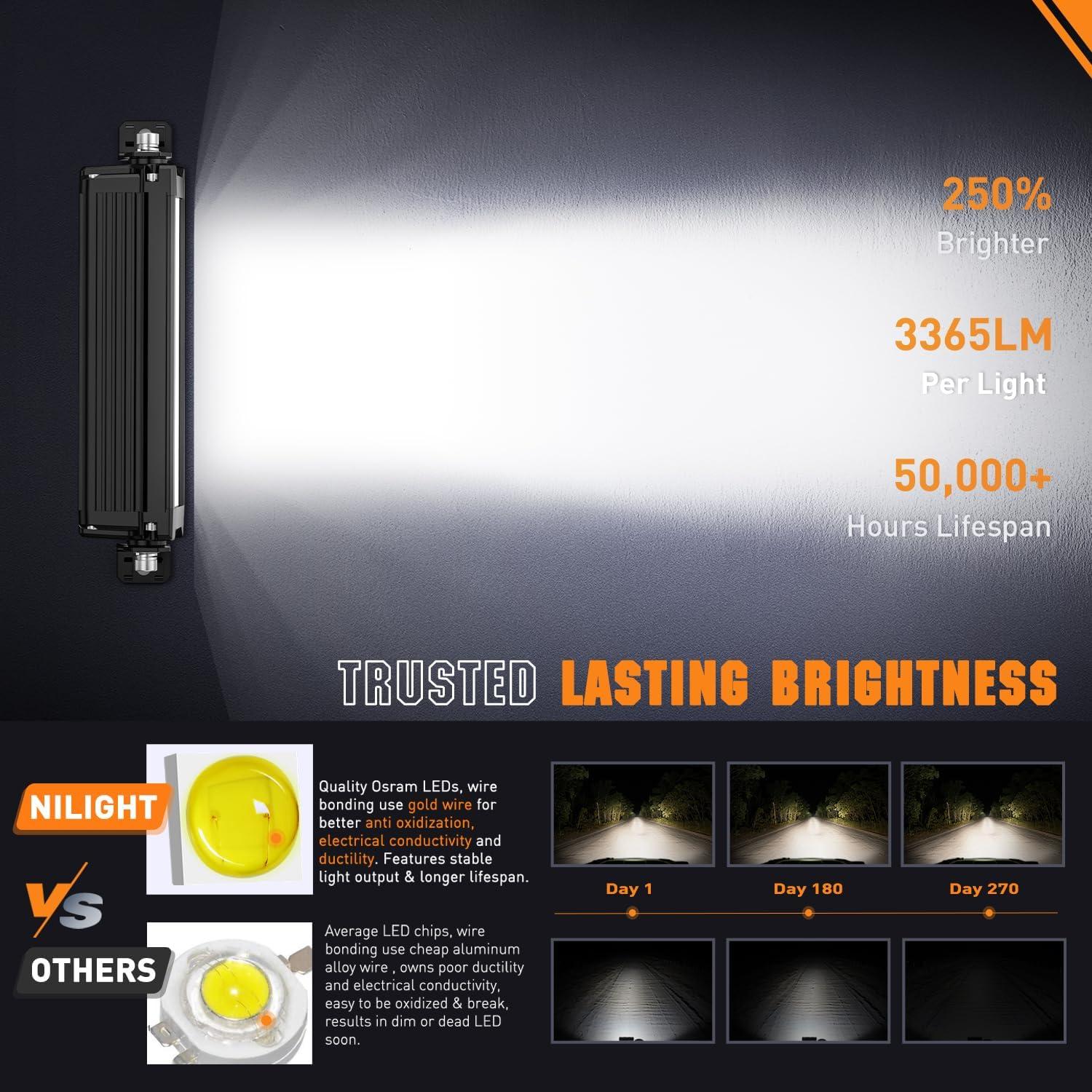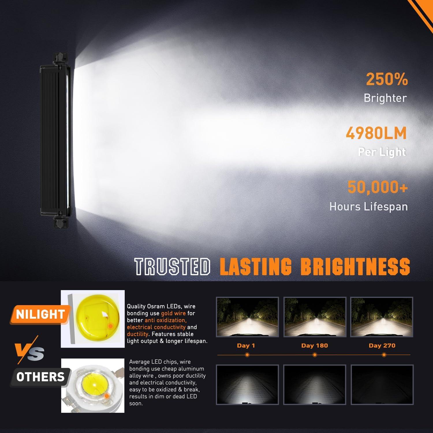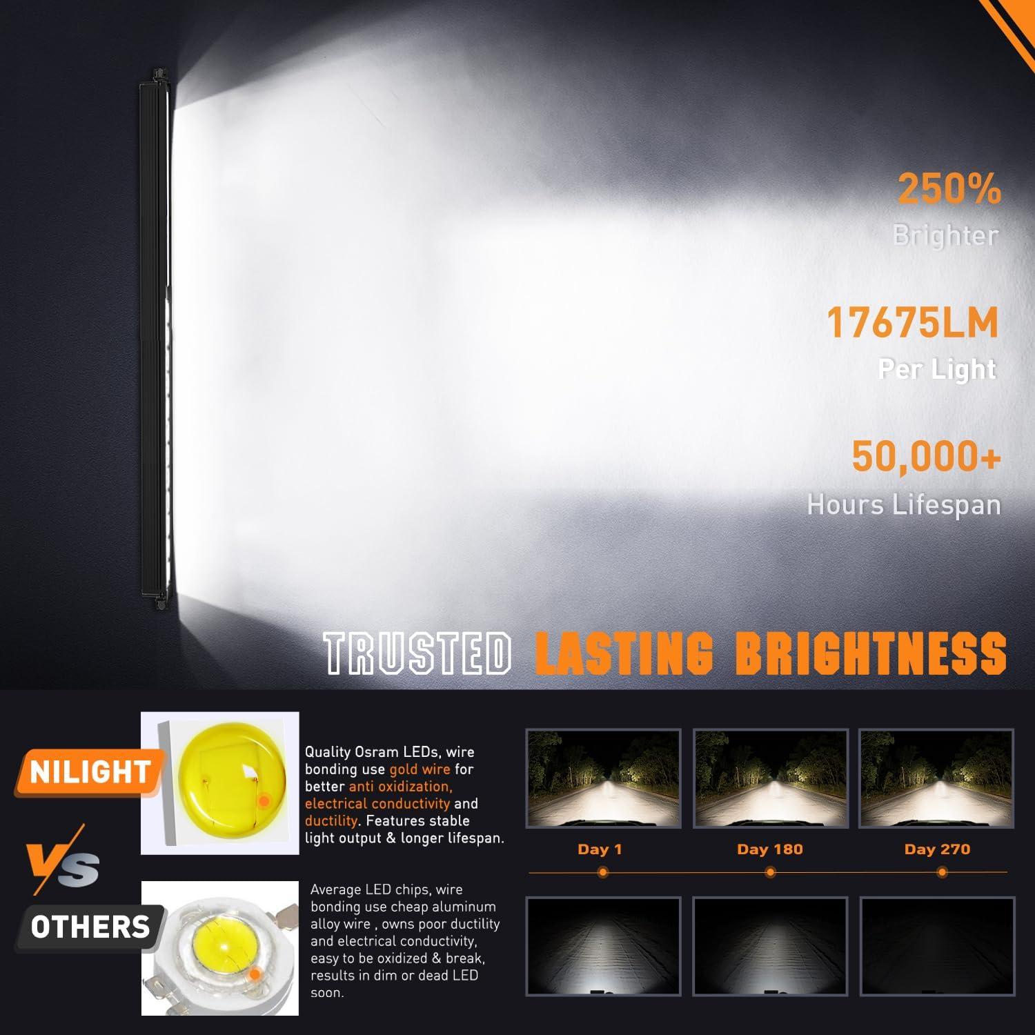 imageNilight LED Light Bar 30 Inch 120W Flood Spot Combo Beam 14400LM IP68 Offroad Single Row Slim Driving Lamp for Pickup Truck SUV ATV UTV Boat Jeep52Inch Curved 210W Light Bar