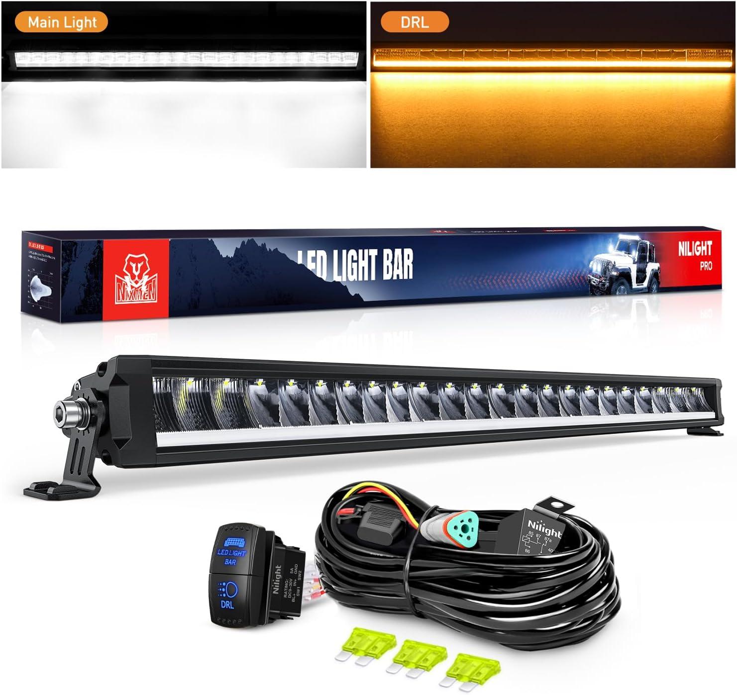 Nilight 30 Inch LED Light Bar 120W 13000LM Anti-Glare Flood Spot Combo DRL Offroad Driving Lamps IP68 w/ 16AWG DT Wiring Kit for Pickup Truck SUV ATV UTV Boat 4×4 Jeep(Amber DRL)
