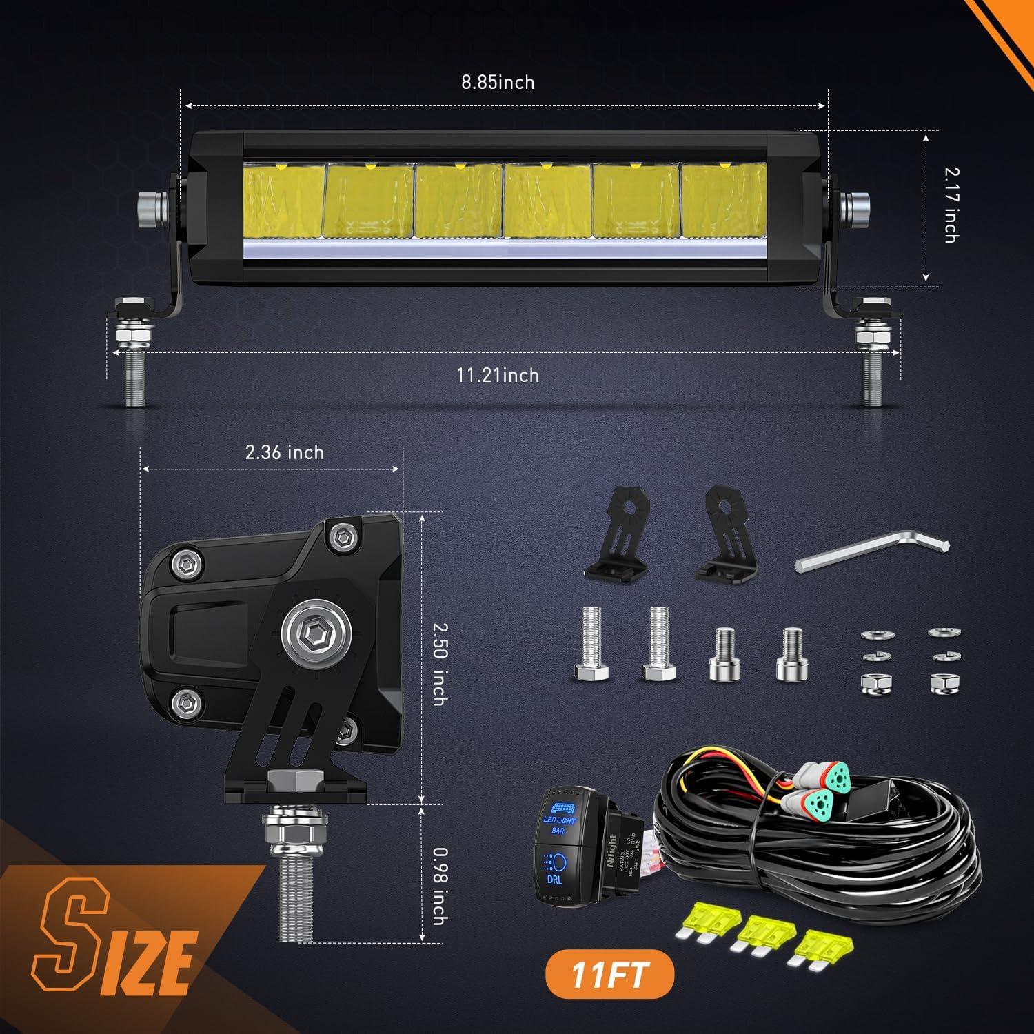 【Perfect Spot Flood Combo w/DRL】:Combining 10°super spot light in the middle and 90°flood light at two sides. Get you both high-intensity spot light for further distance and also bright flood light at broader distance. Clear all darkness forward and at side roads for your nighttime driving. It also designed with DRL for extra safety for daytime ride