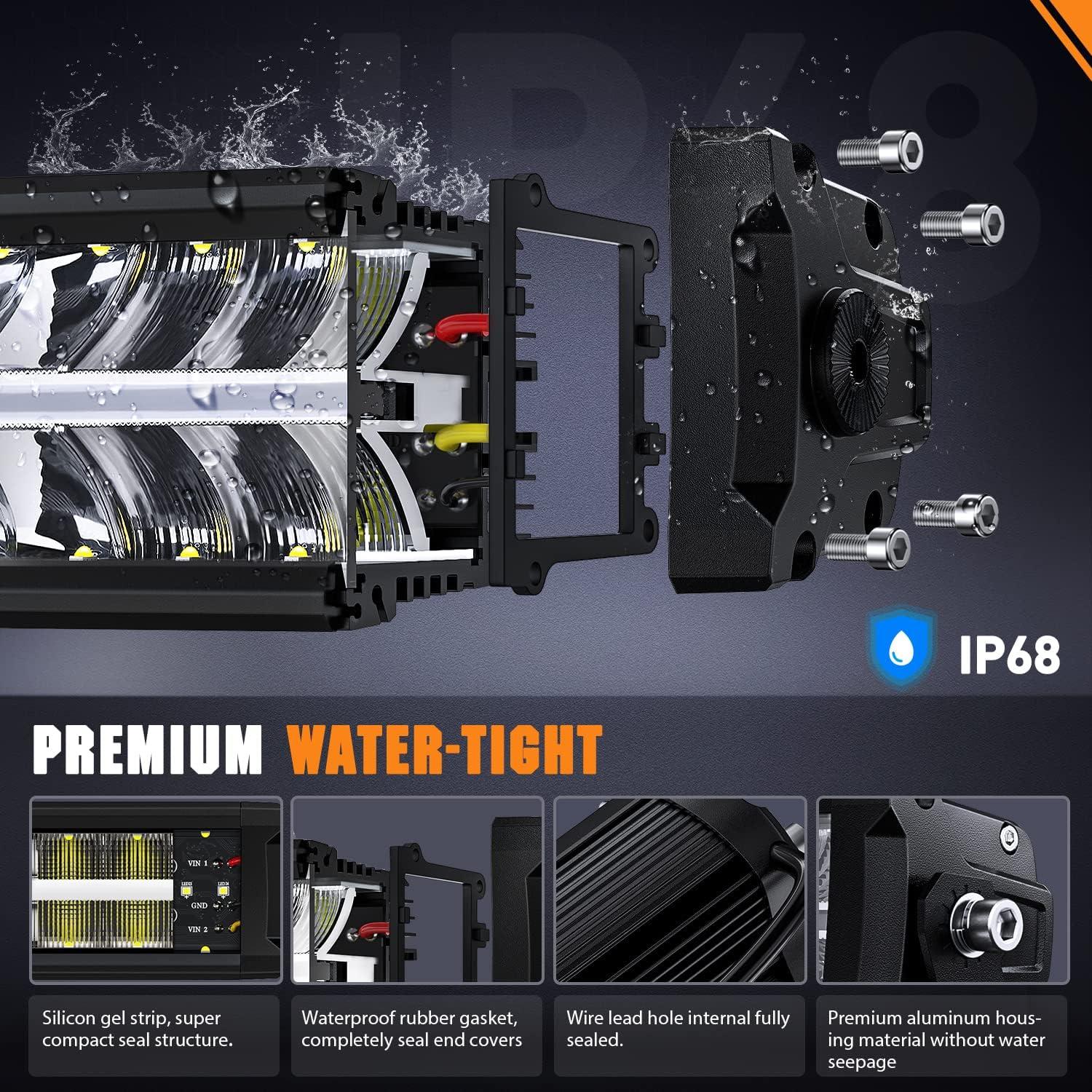 【Premium Durability】 IP68 waterproof rated, powerful to withstand any harsh environments and weather conditions. Solid built in quality 6063 and ADC12 aluminum housing and thick heat shrink shell, efficiently accelerate heat dissipation and maintain a safe temperature to ensure stable lighting output as well as lighting durability