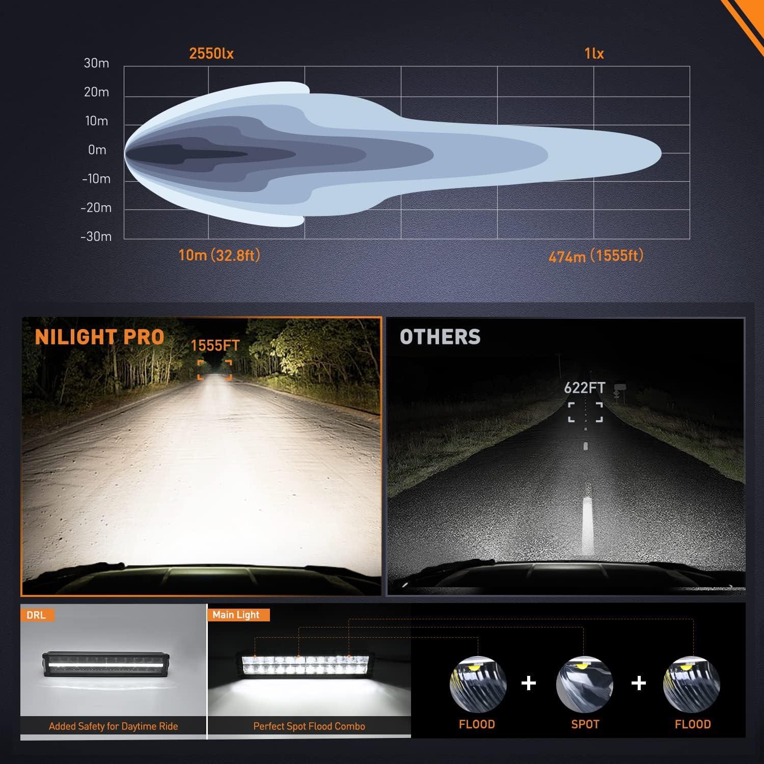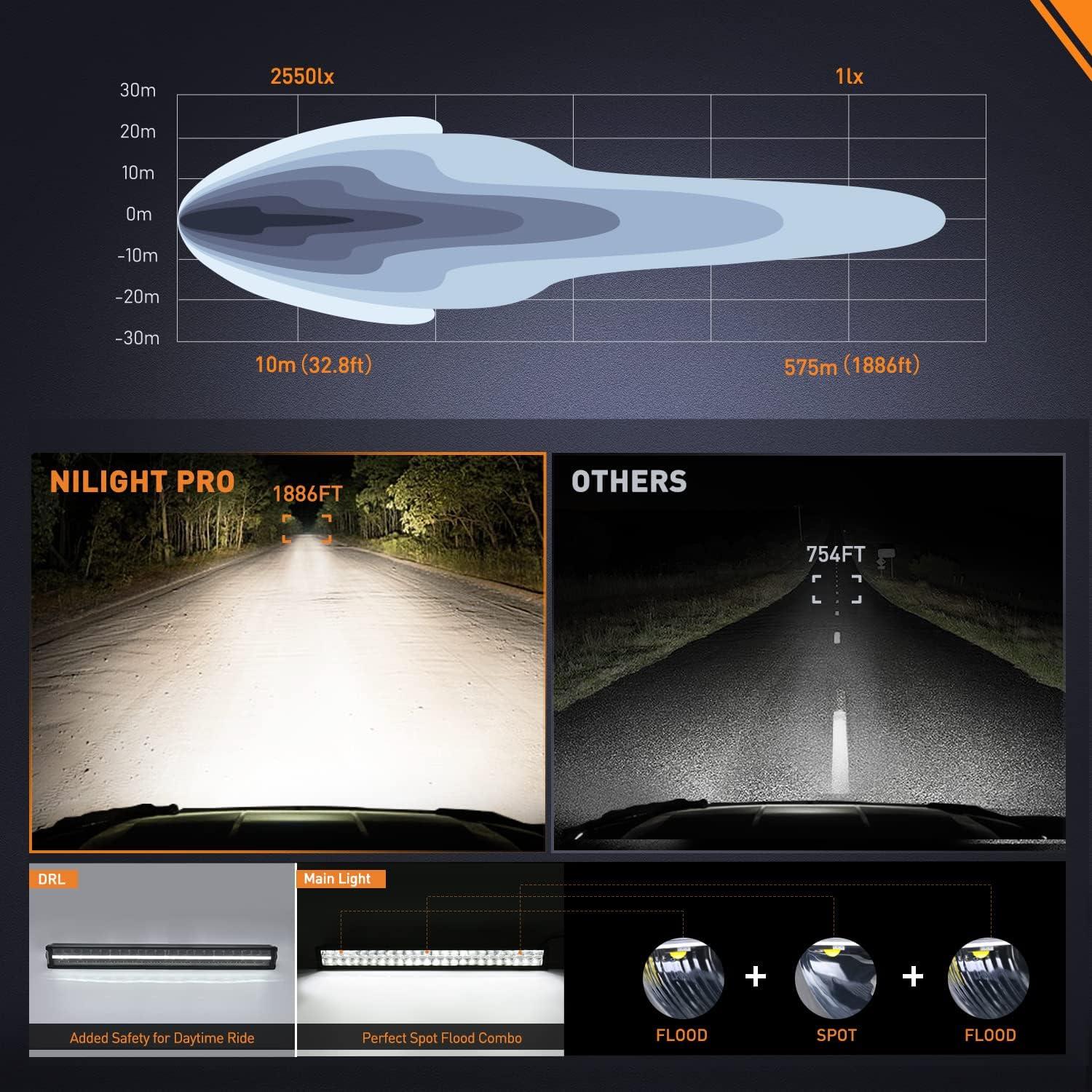 imageNilight 30 Inch LED Light Bar DRL 240W 24800LM AntiGlare Flood Spot Offroad LED Driving Light IP68 w 12AWG DT Connector Wiring Harness for Pickup Truck SUV ATV UTV Boat 4x4 JeepWhite DRL