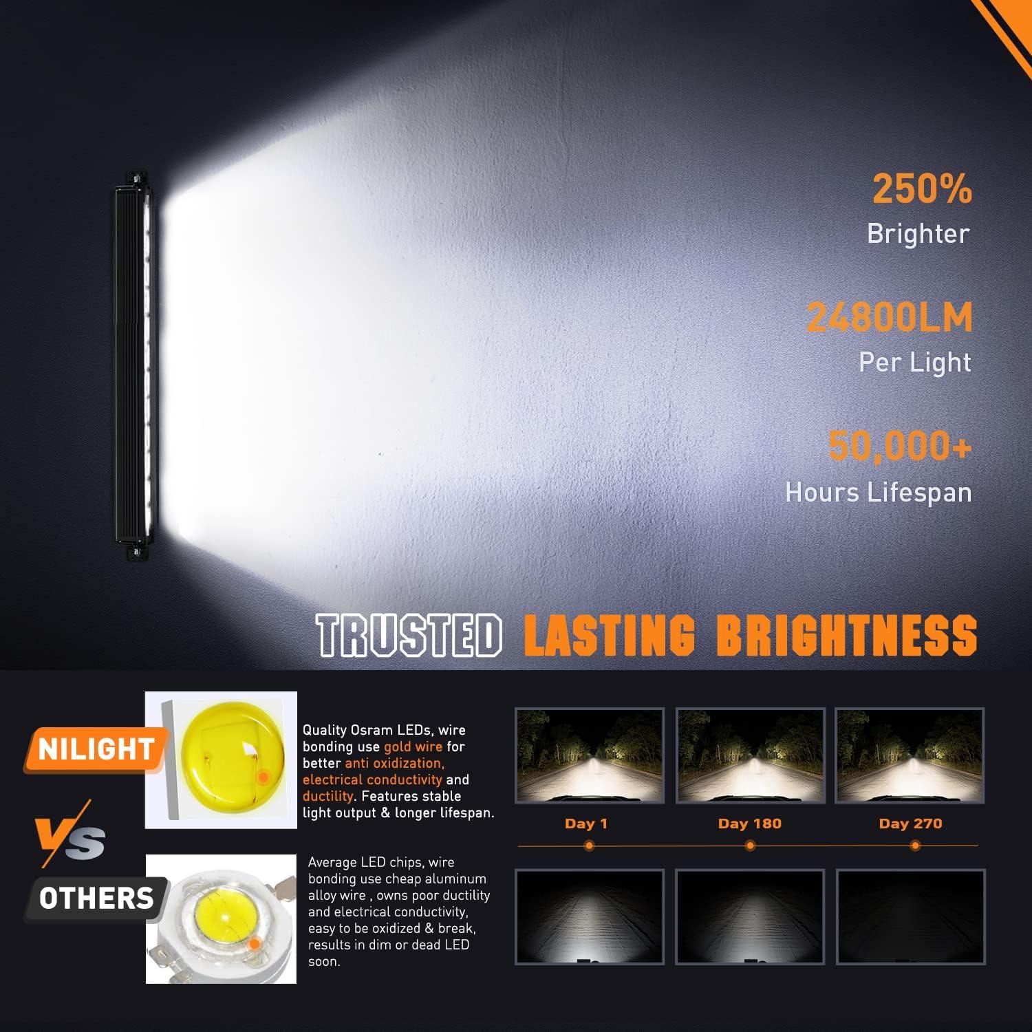 Nilight – NI04-100W 17″ 80w LED Work Light Single Row Spot Flood Combo LED Light Bar Driving Lights Offroad Lighting – 2 Style Mounting Brackets,2 years Warranty(White)