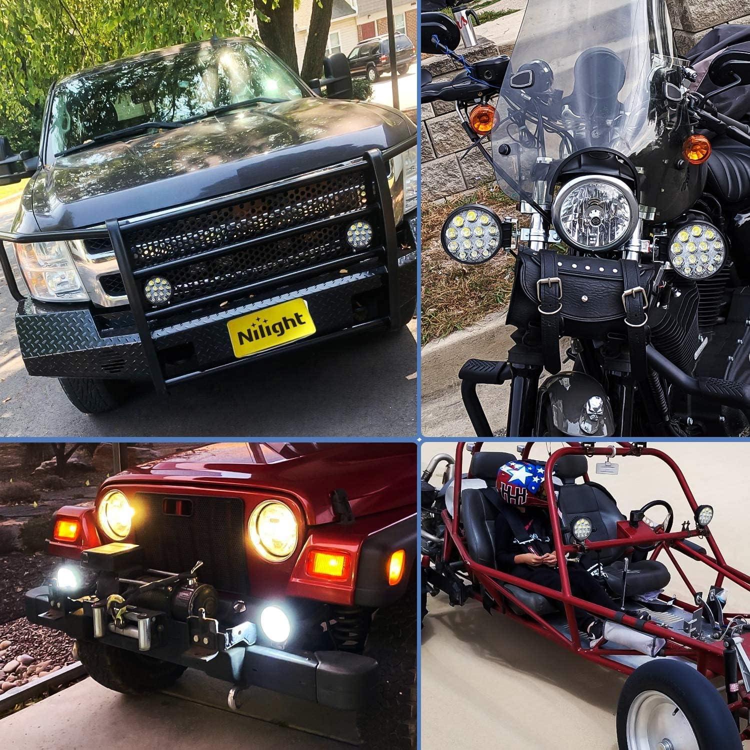 Nilight 4.5Inch 42W 4200LM Amber LED Light Pods Round Flood Lights for Off Road, Roof & Fog – 16AWG Wiring Harness Kit-2 Leads(Square LED Pod Lights)