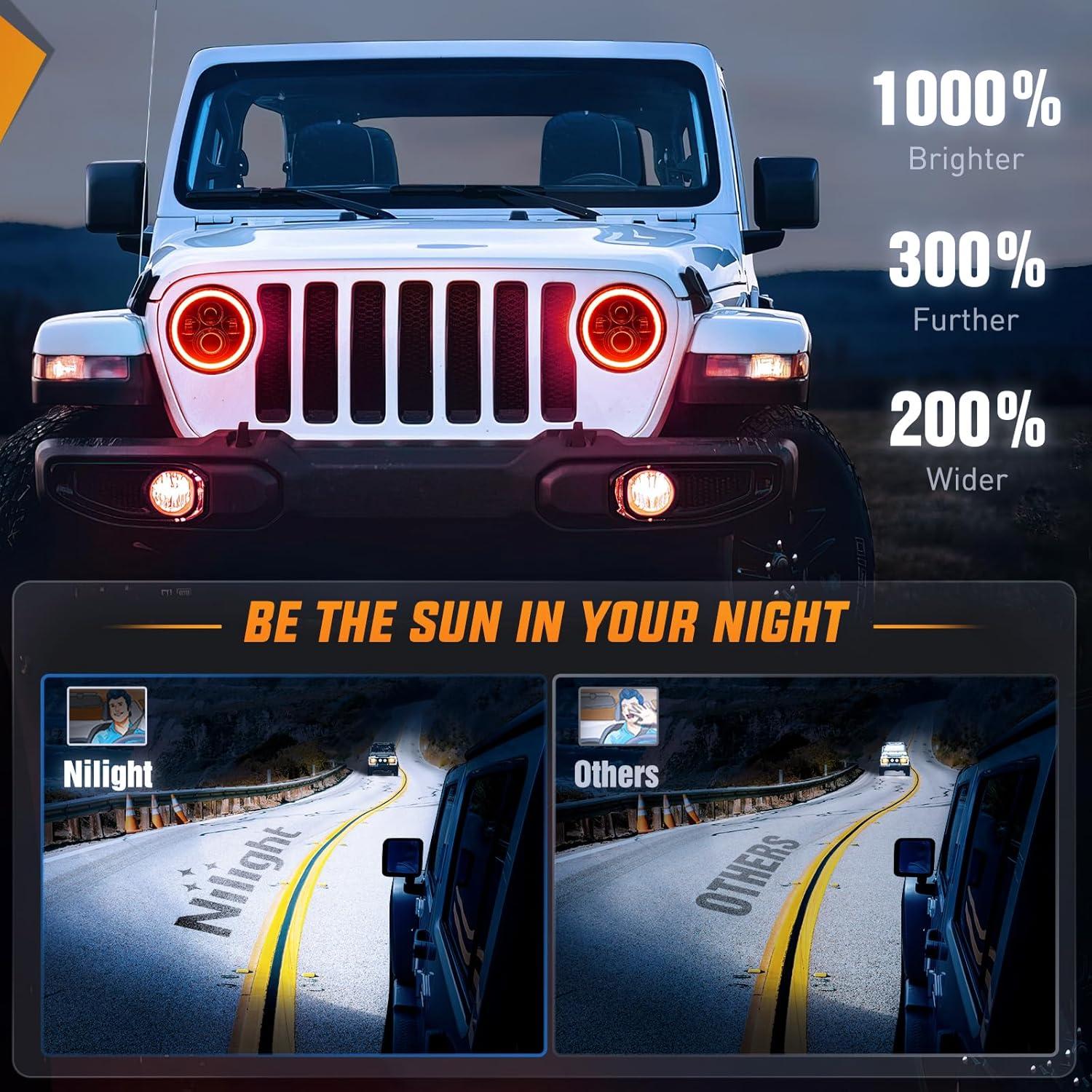 imageNilight 4 Inch LED Fog Light Assembly Compatible with 2007 2008 2009 2010 2011 2012 2013 2014 2015 2016 2017 2018 Jeep Wrangler JK Unlimited JKU wConversion Cable Clear LampsJK Headlight Red Amber 2Pcs