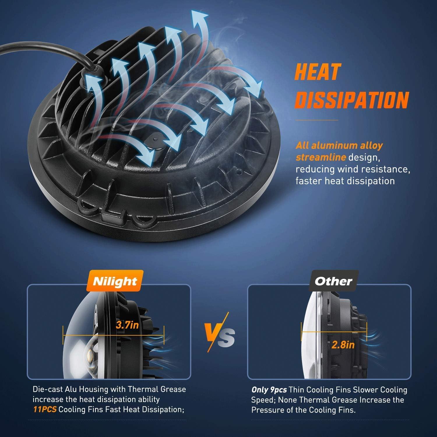 imageNilight 4 Inch LED Fog Light Assembly Compatible with 2007 2008 2009 2010 2011 2012 2013 2014 2015 2016 2017 2018 Jeep Wrangler JK Unlimited JKU wConversion Cable Clear LampsJK Headlight White Amber 2Pcs