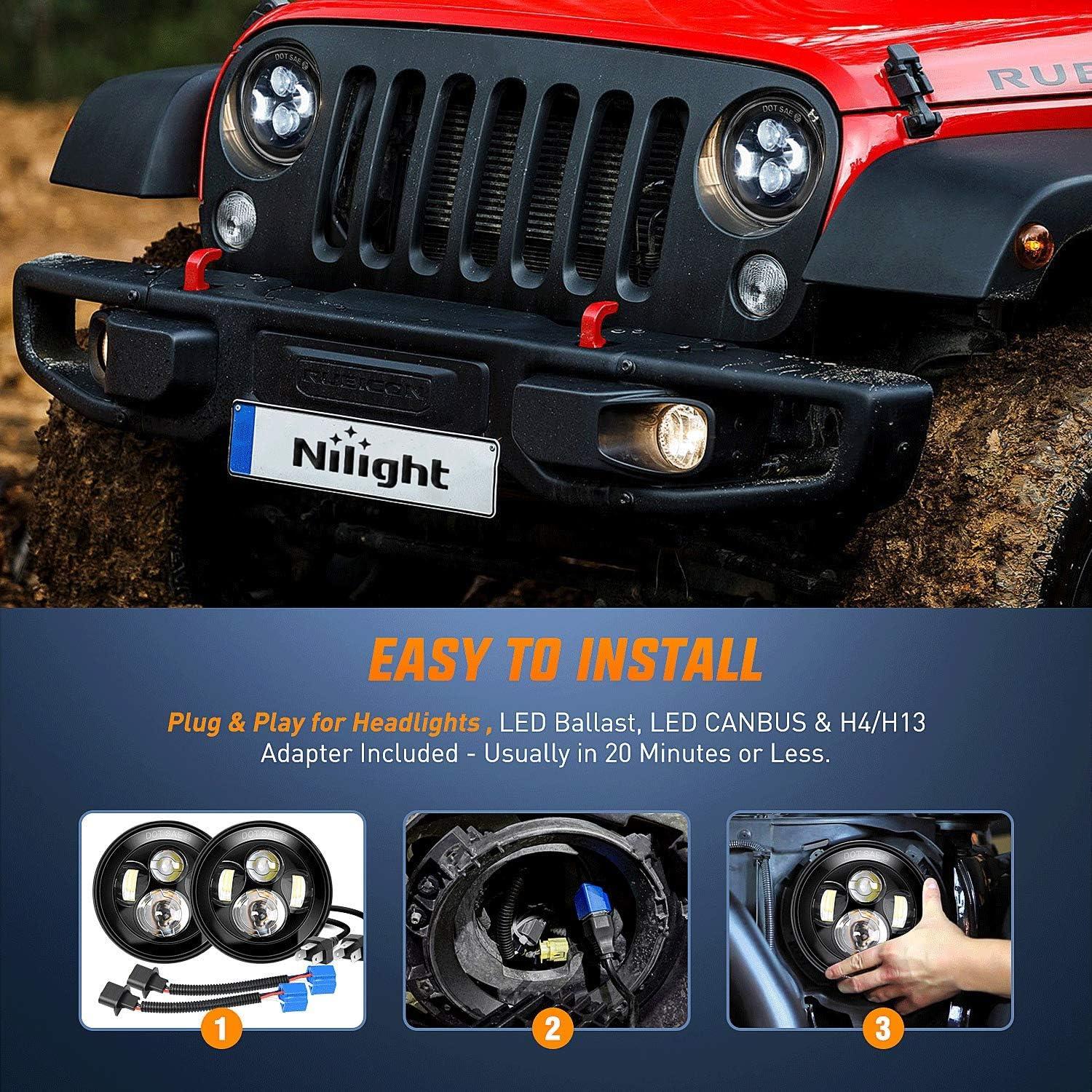 imageNilight 4 Inch LED Fog Light Assembly Compatible with 2007 2008 2009 2010 2011 2012 2013 2014 2015 2016 2017 2018 Jeep Wrangler JK Unlimited JKU wConversion Cable Clear LampsJK Headlight White 2Pcs