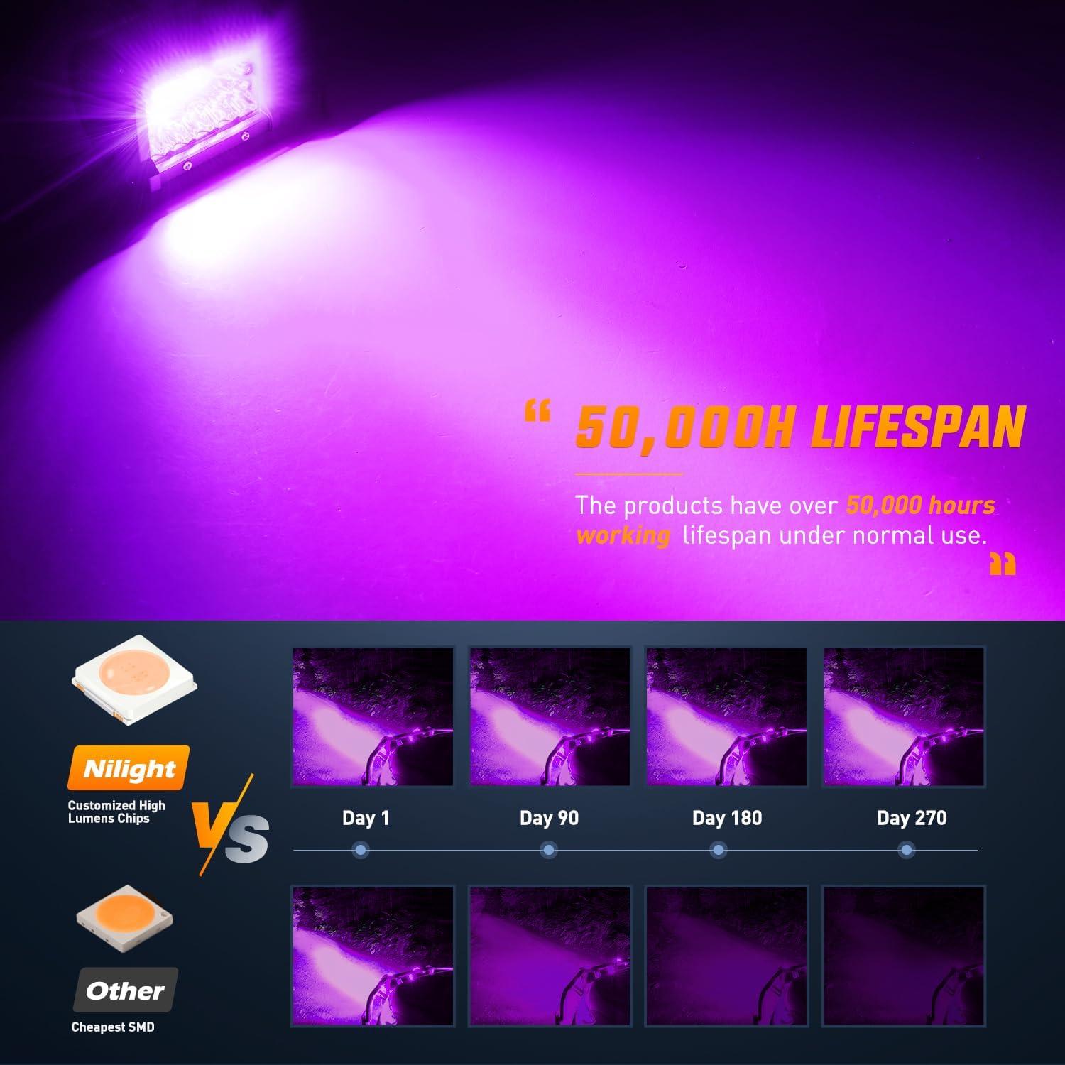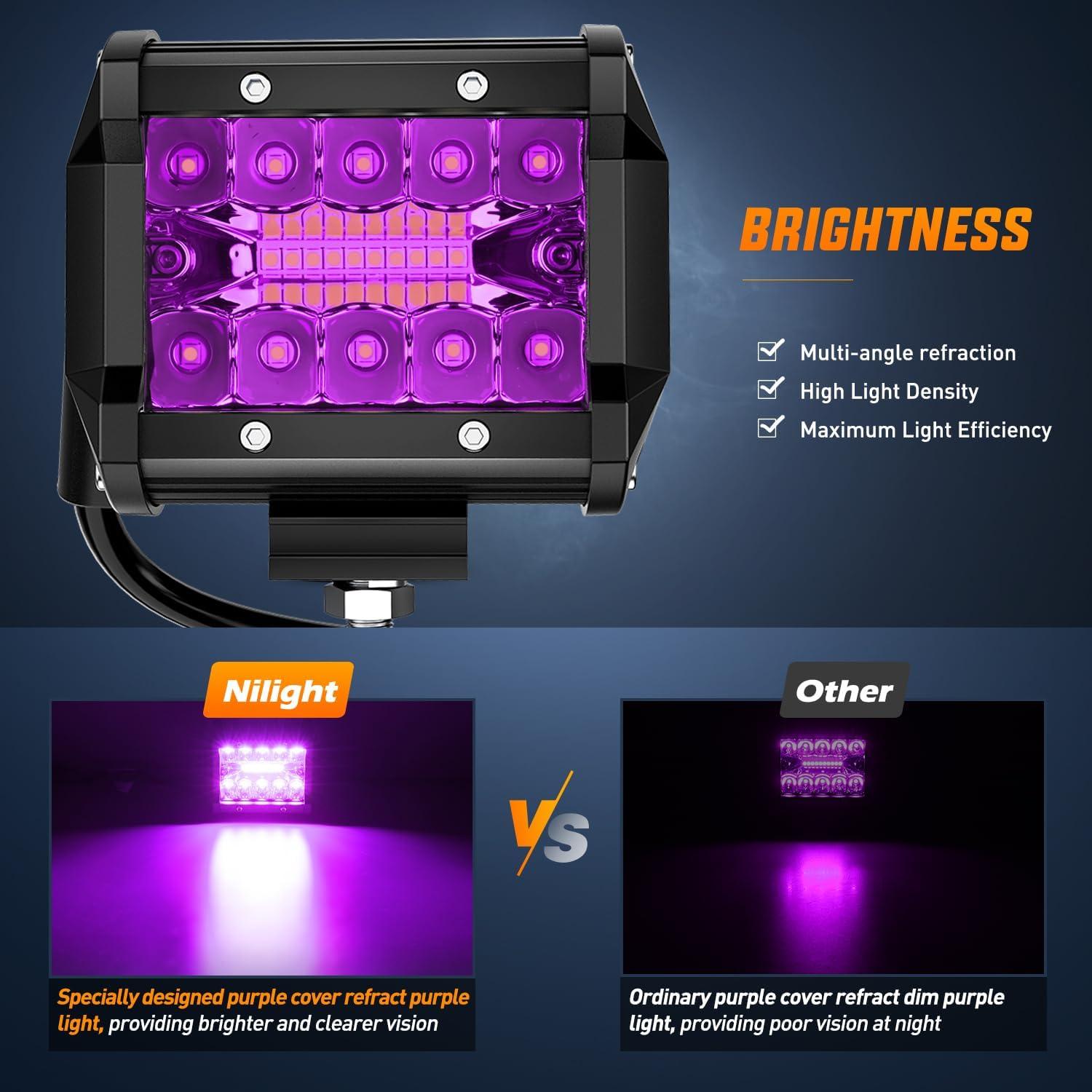 imageNilight 4 Inch LED Light Pods Purple Triple Row 2PCS 60W Flood Spot Combo Off Road Driving Decoration Neon Hunting Lighting for UTV Pickup Van Boat Tractor