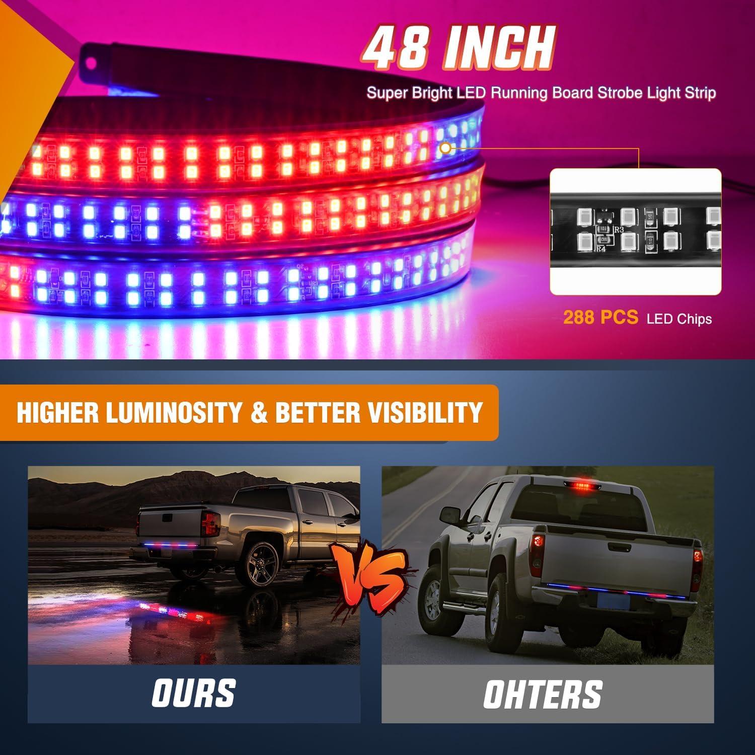 Nilight 49 Inch Emergency Strobe Light Strips with Controller, 288LED Flashing Warning Hazard Safety Rear Window Tailgate Lights for Truck Trailer Construction Plow Pickup Tow SUV Vehicles, Red White(48" Tailgate Strobe Red Blue)