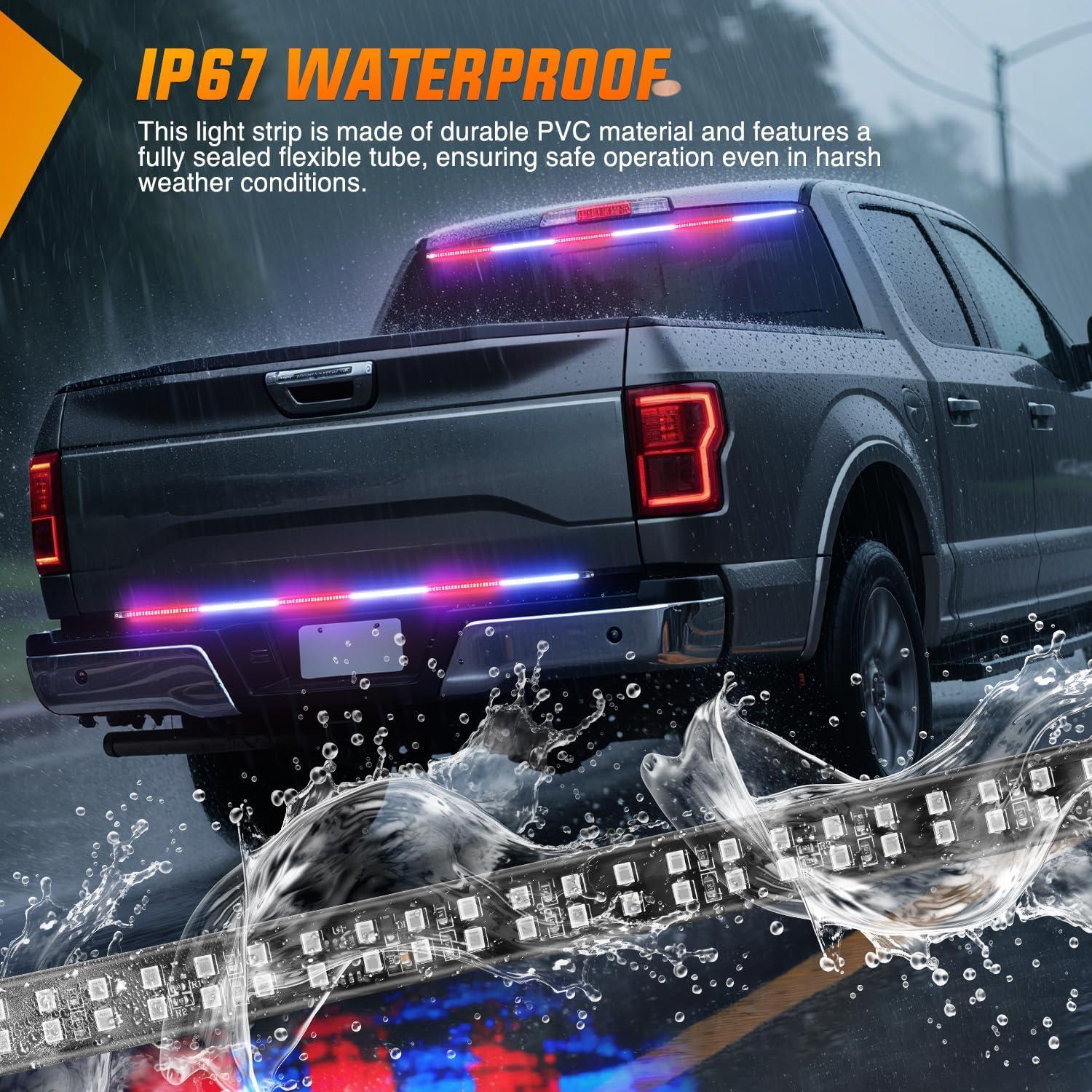 High Quality: Made with high-grade PVC material and fully sealed flexible hose, this light strip is waterproof. It works flawlessly in rain, snow, fog, sandstorms, or any harsh weather. It's rated for up to 50,000 hours of use