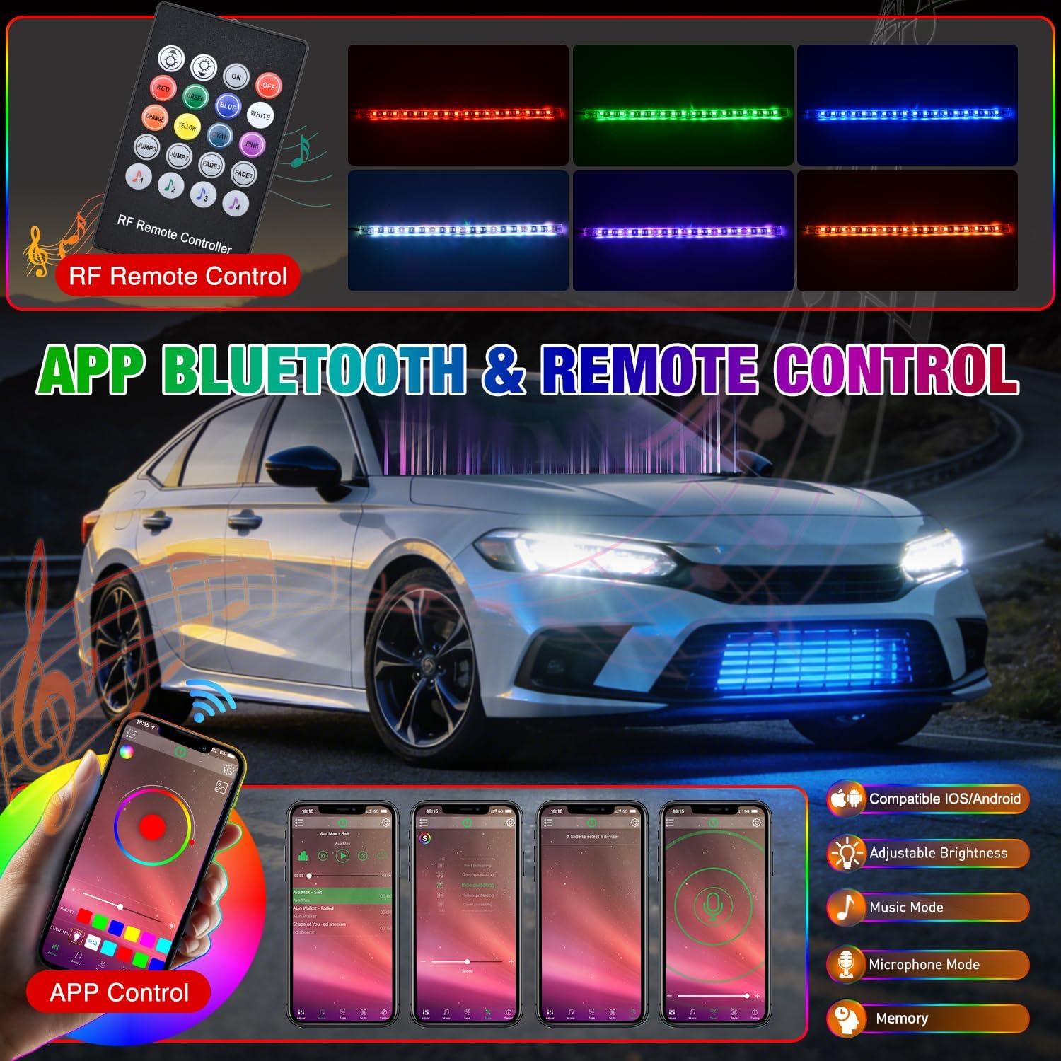 High-Quality Material: ABS material made, ultra-thin, high quality music LED strip light, water resistant, anti-collision, anti-corrosion, fits all cars SUV vans trucks boats with 12V DC power.